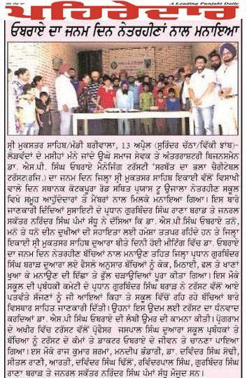 Team members of Sarbat da Bhala Charitable Trust Shri Muktsar Sahib celebrated the Birthday of Prof ( Dr) S.P.Singh Oberoi Ji in the blind school Shri Muktsar Sahib.