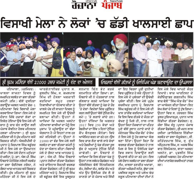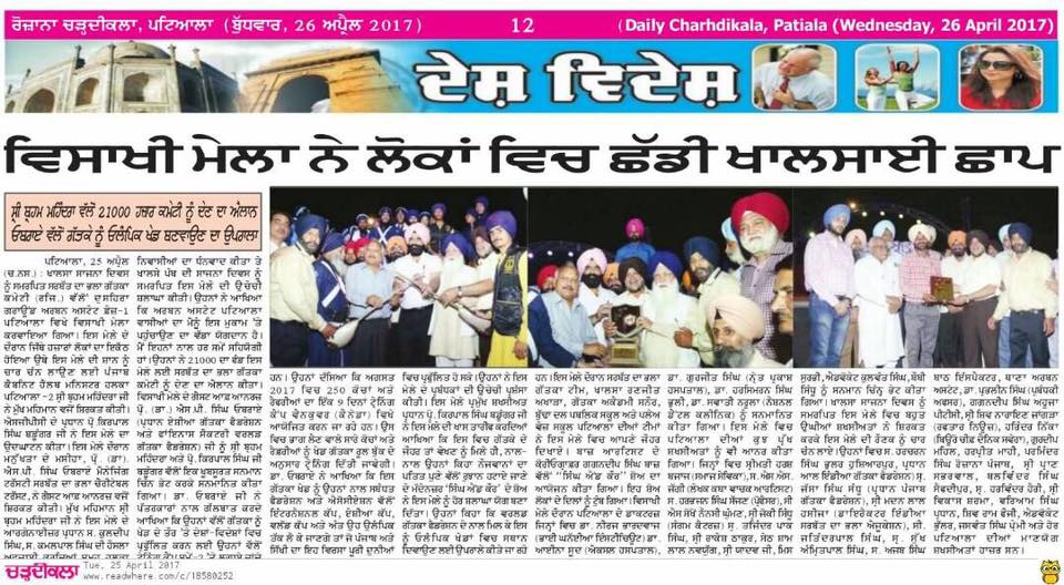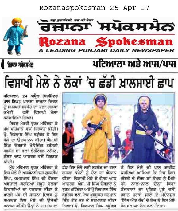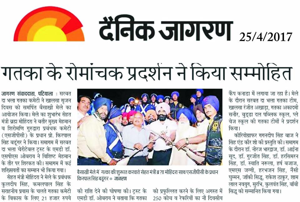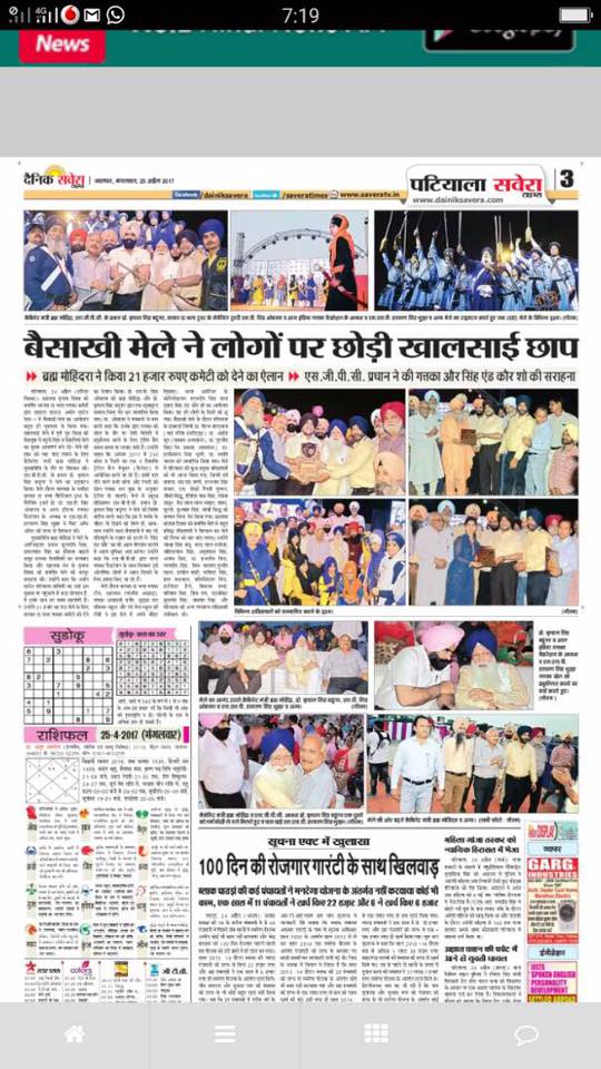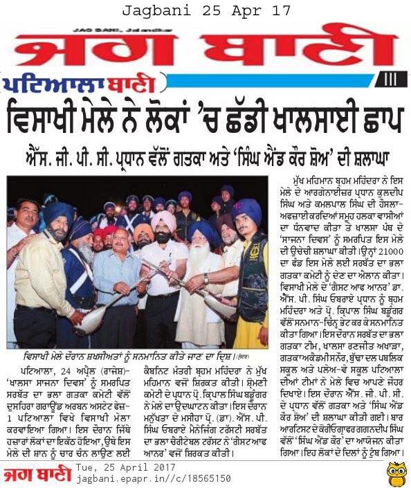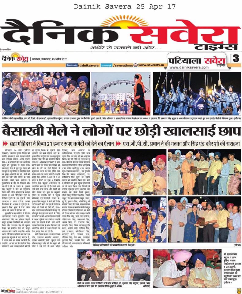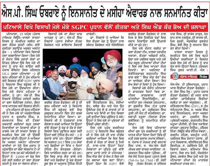 Prof ( Dr ) S P Singh Oberoi Ji honoured by President SGPC Prof Kirpal Singh Badungar Ji & Punjab Health Minister Sdr Brahm Mohindra ji during Vaisakhi Mela 2017 at Dussehra Ground Urban Estate Phase I Patiala