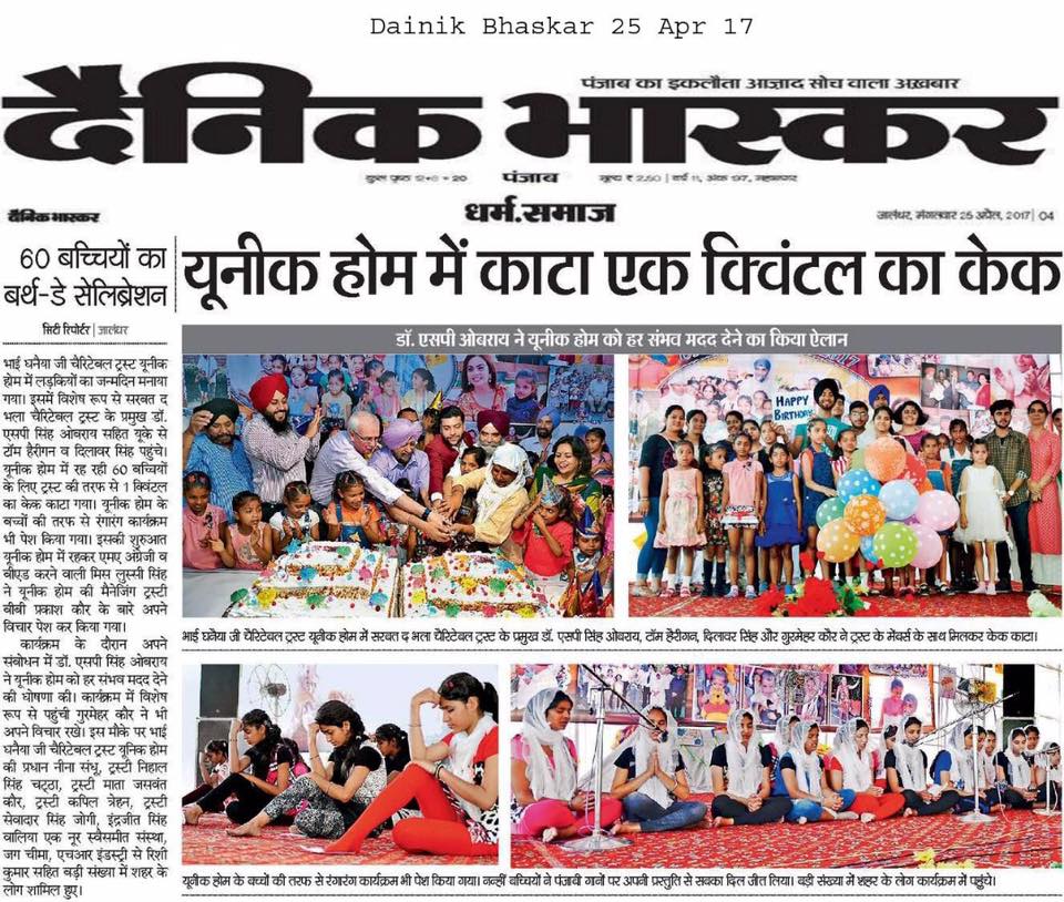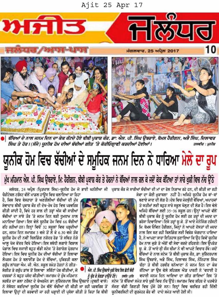 As a Chief Guest Prof ( Dr) S P Singh Oberoi Ji attended Annual Birthday Celebration at Unique Home for Abandoned Girls Jalandhar