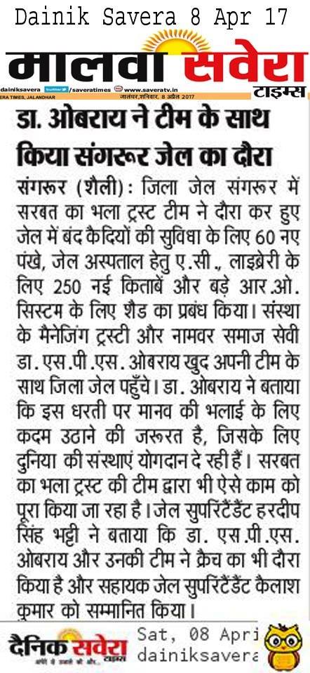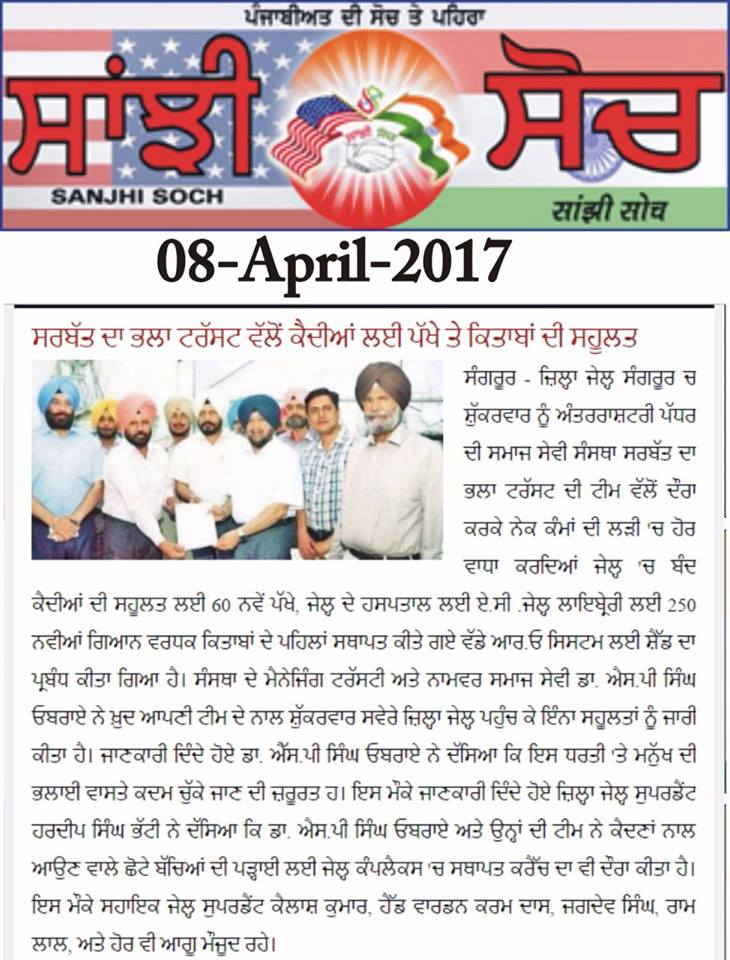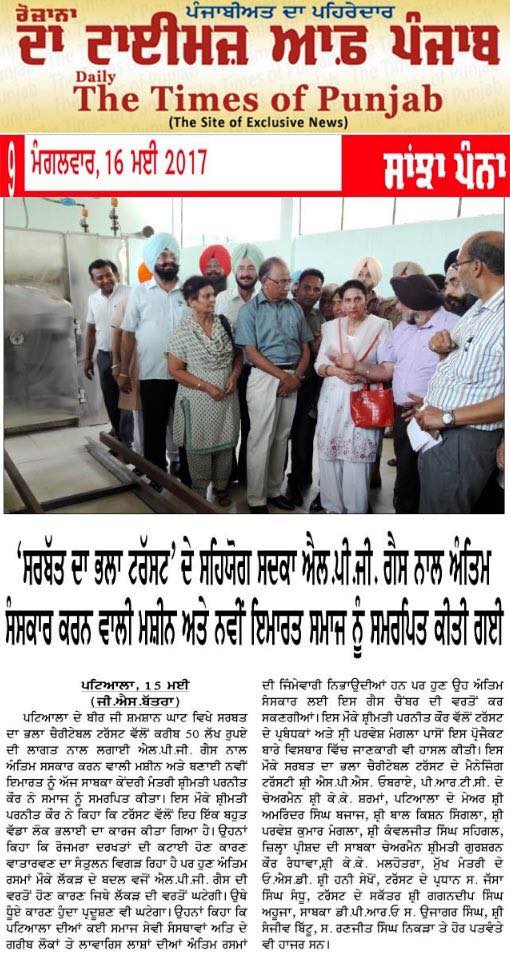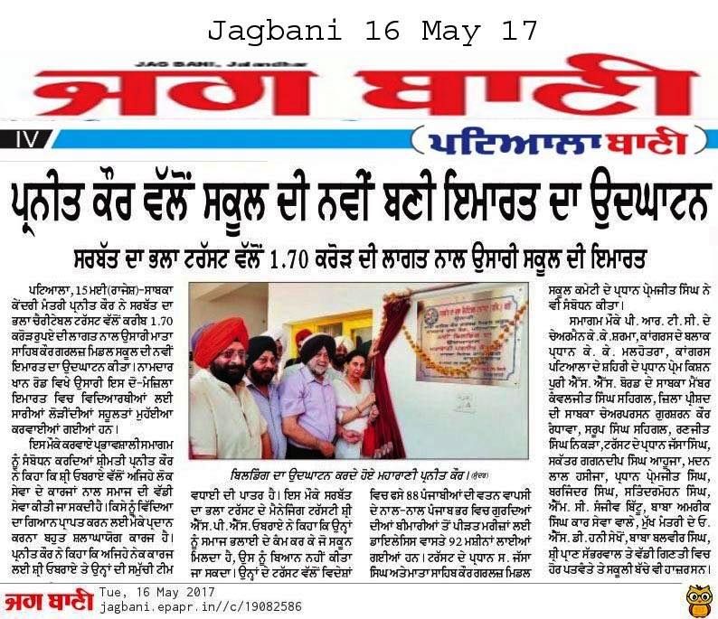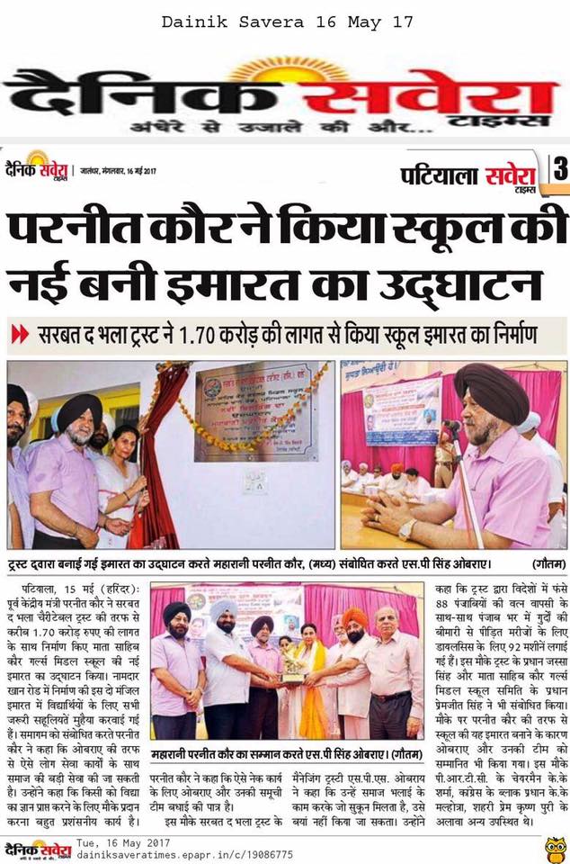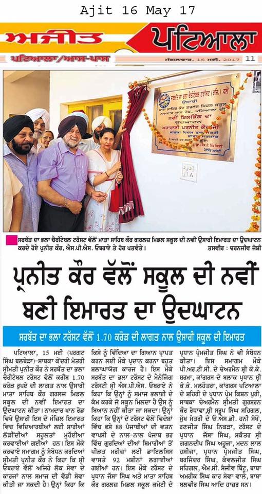 Sarbat da Bhala Charitable Trust constructed the new building of Mata Sahib Kaur Girls School Patiala, Gurdwara Sahib & Sunny Oberoi Academic Block at a cost of Rs 1.75 crore