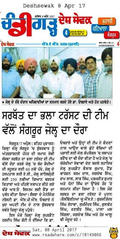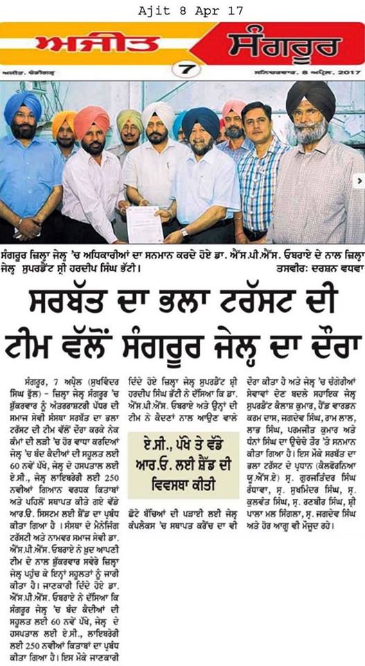 Prof (Dr) SP Singh Oberoi Ji visited at district Jail Sangrur & awarded the appreciation letter to 6 deserving staff of jail issued by DGP Police