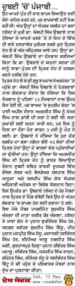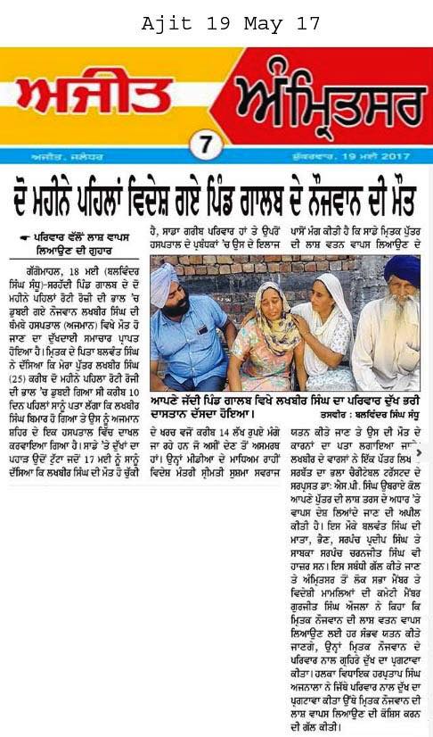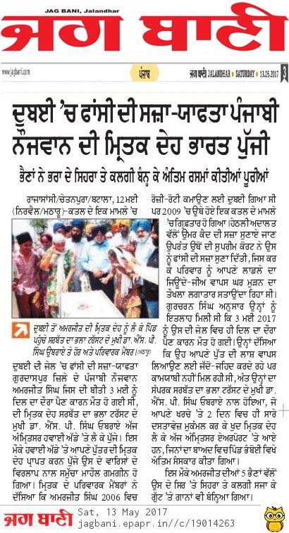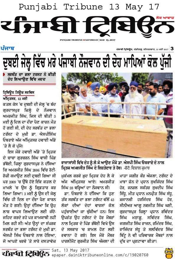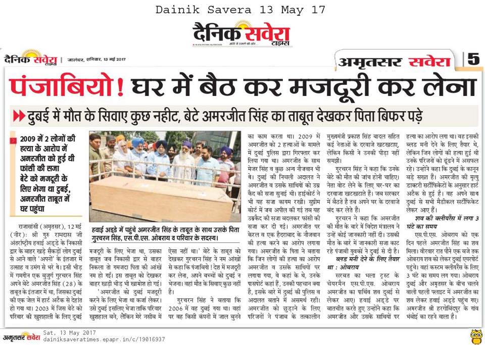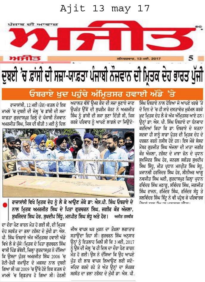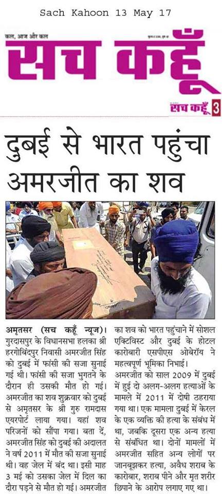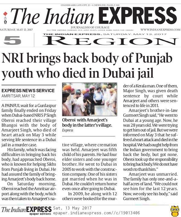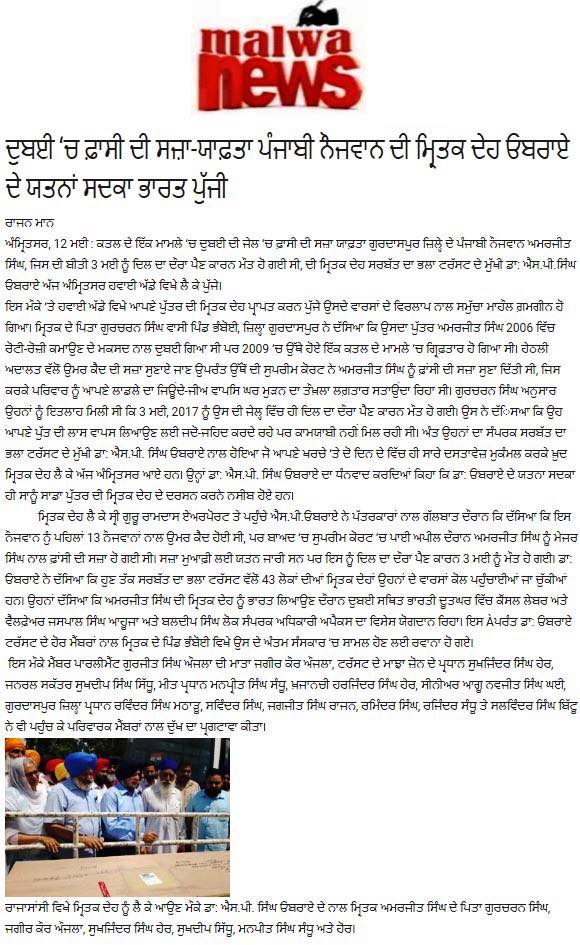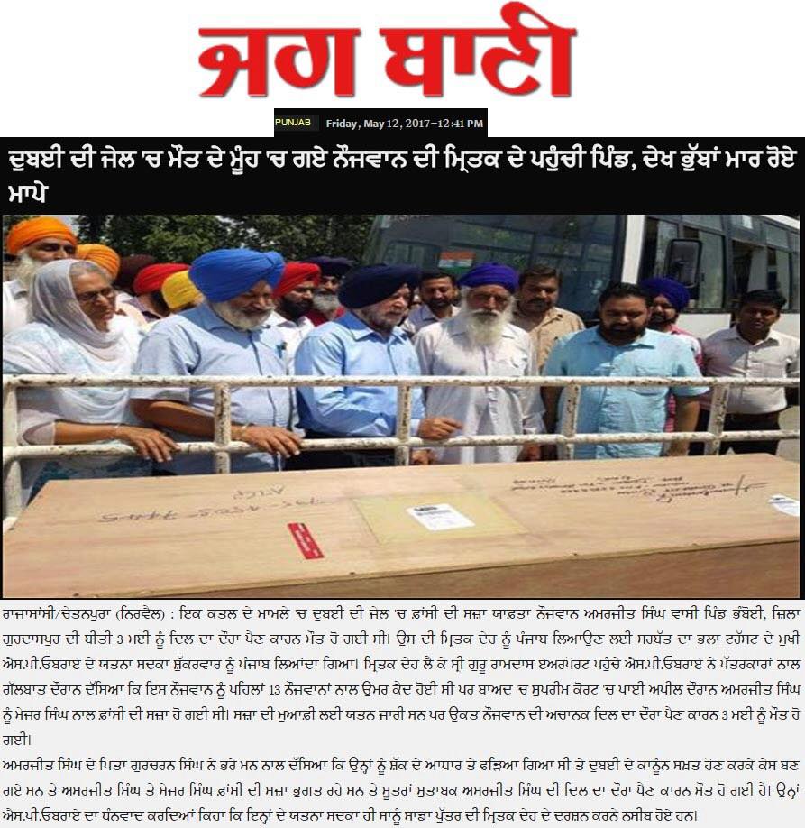 Prof (Dr) S.P.Singh Oberoi brings back the body of Punjab youth who died in Dubai jail