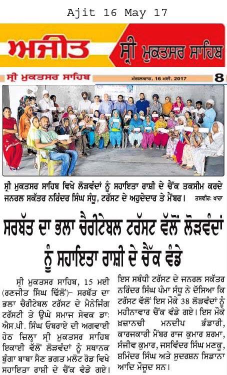 Sarbat da Bhala Charitable Trust Team members of Sri Muktsar Sahib handed over the monthly Pension cheques cheques to 47 widow & needy ladies.