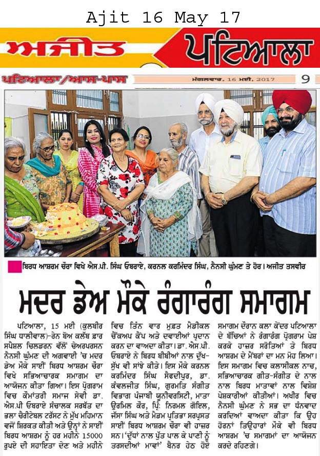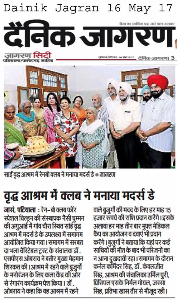 Prof (Dr)SP Singh Oberoi Ji Celebrated Mothers Day at Sai Birdh Ashram village Chora Patiala