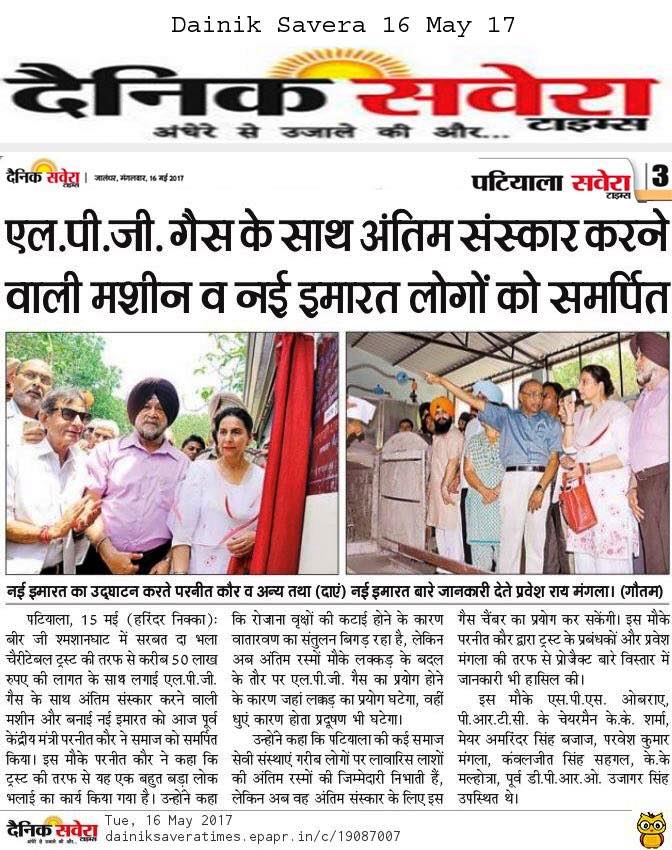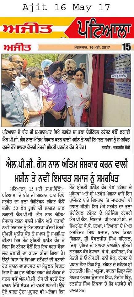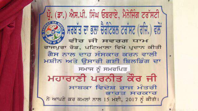 Maharani Preneet Kaur Ji along with Prof ( Dr) S P Singh Oberoi Ji visited the ground & dedicated the crematorium to the Society