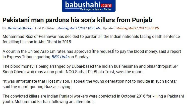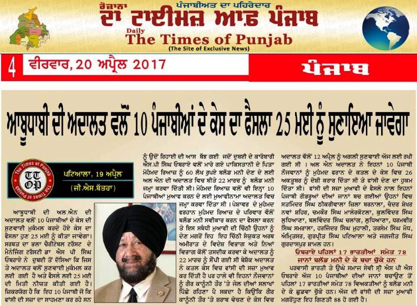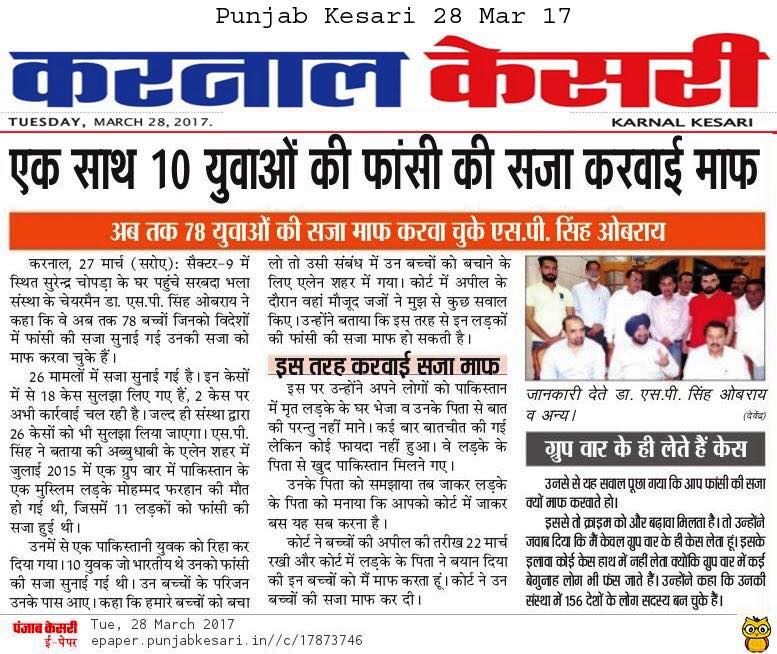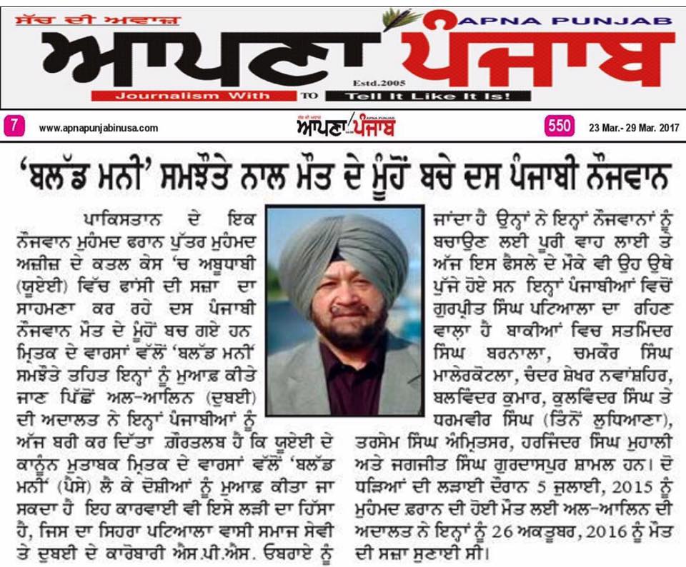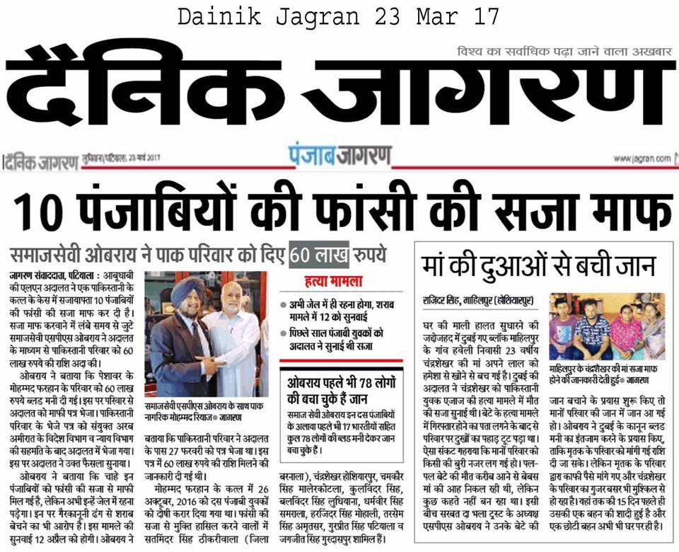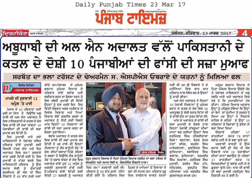 Prof ( Dr ) S P Singh Oberoi Ji paid Blood Money to save 10 youth from Punjab on Death row in UAE