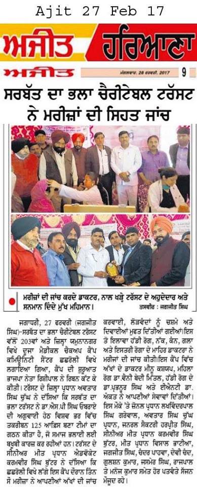 Sarbat da Bhala Charitable Trust organized 203 rd Free Eye Check up camp at village chachrolli district Kurukshetra Haryana