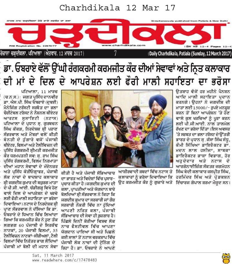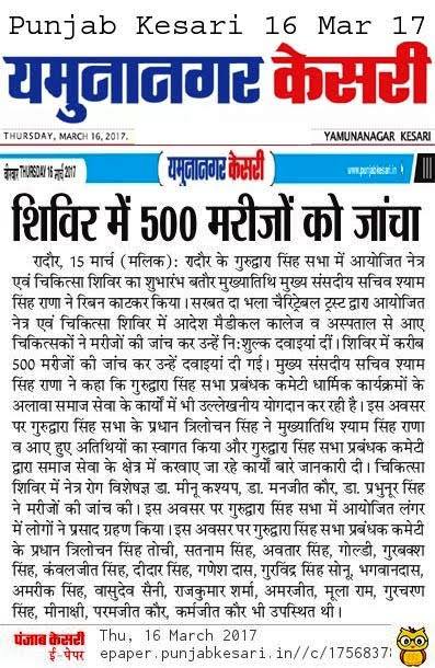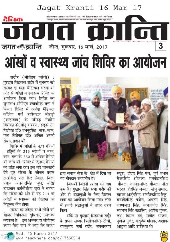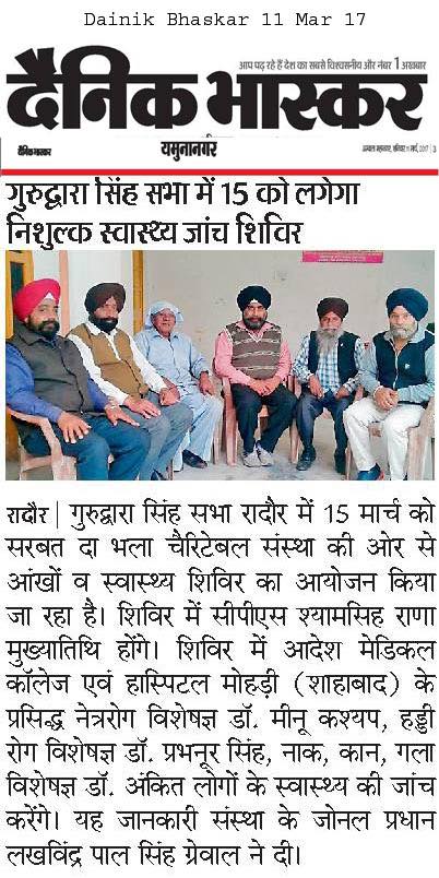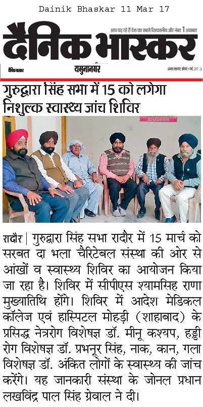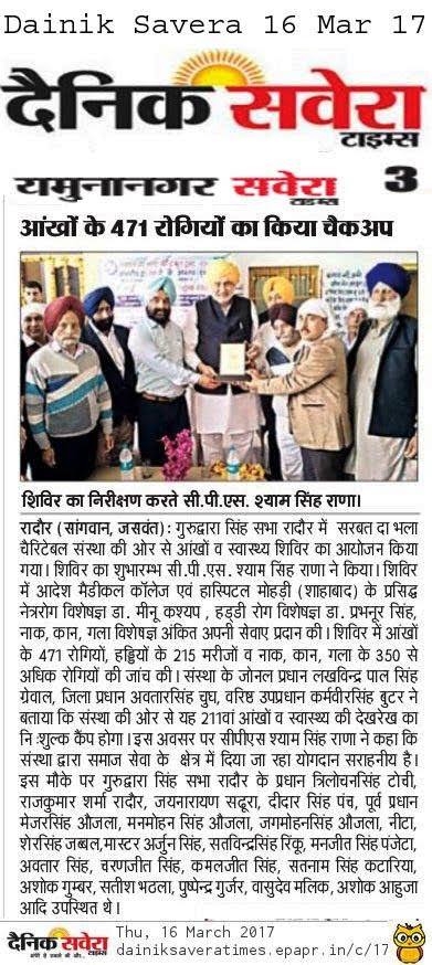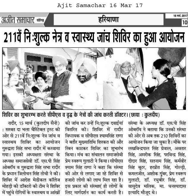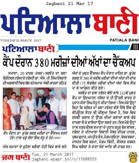 SDBCT in Village Vraichan Patti SAMANA District Patiala. Total OPD 325 Operations 68 and spectacles given to 54 needed persons