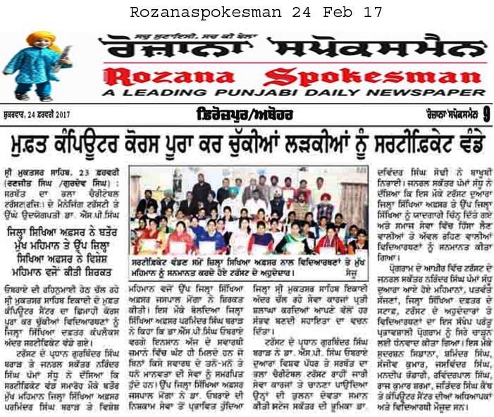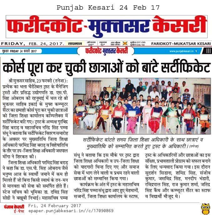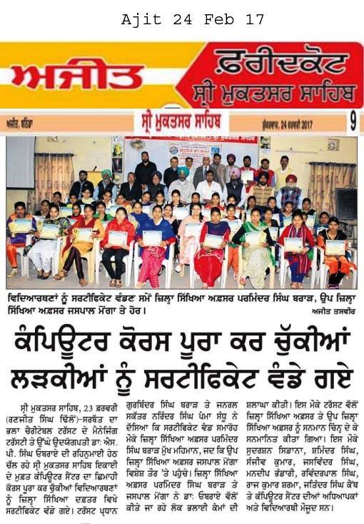 Sarbat Da Bhala Charitable Trust Sewing center Shri Muktsar sahib students awarded with certificate upon completion of their course