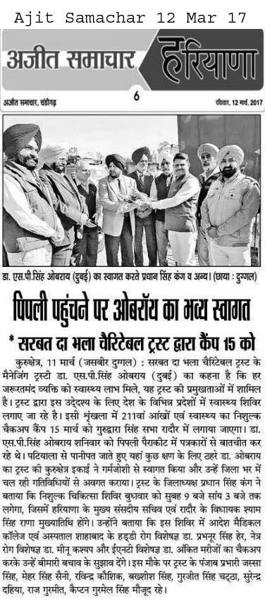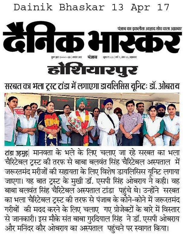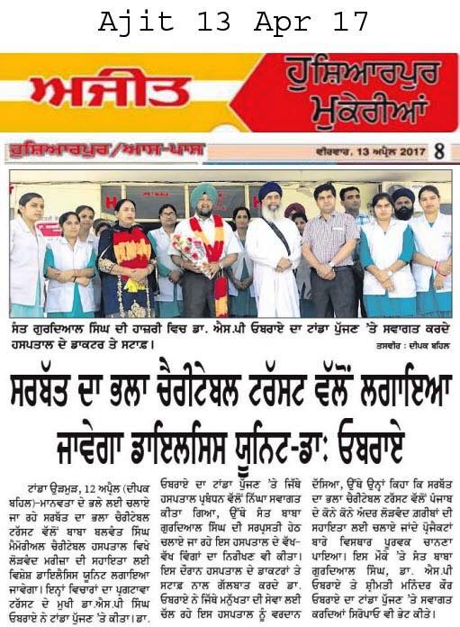 Prof (Dr) S P Singh Oberoi Ji , Mrs Oberoi along with Baba Gurdiyal Singh Jee visited at Baba Balwant Singh ji Memorial Charitable Hospital at Darapur,Urmur Tanda Hoshiarpur