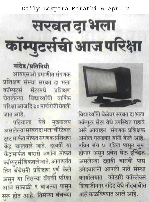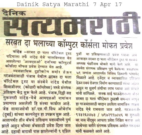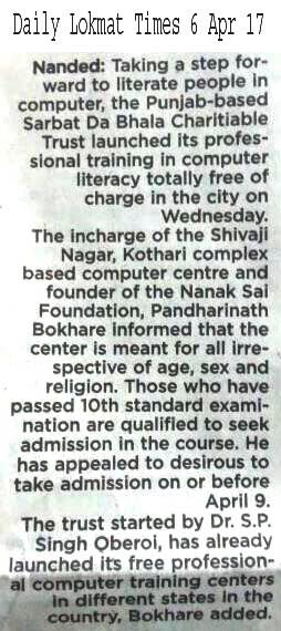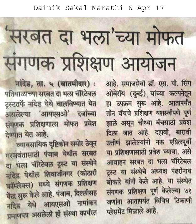 SDBCT Nanded unit started free computer training courses.