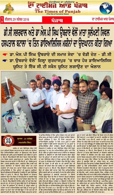 Sarbat Da Bhala Charitable Trust donated 3 Dialysis Units at Civil Hospital