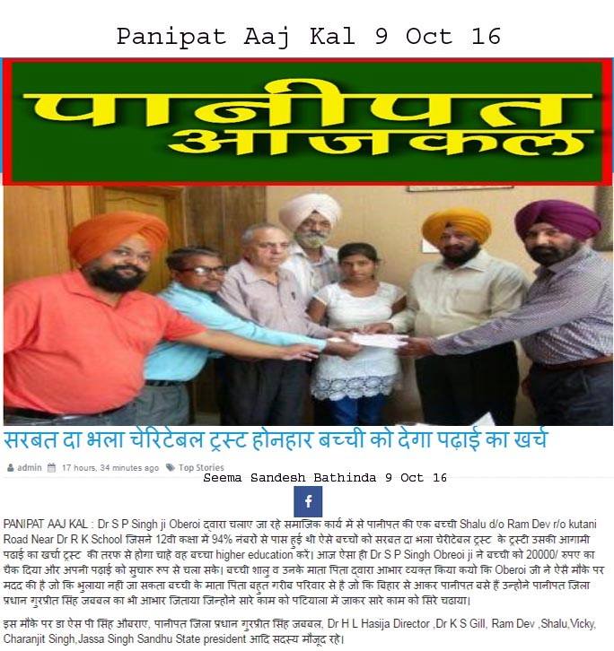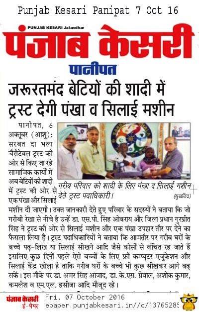 Sarbat da Bhala Charitable Trust has given Sewing Machine and Ceiling Fan for the marriage of D/o Kamlesh Kaur from Panipat