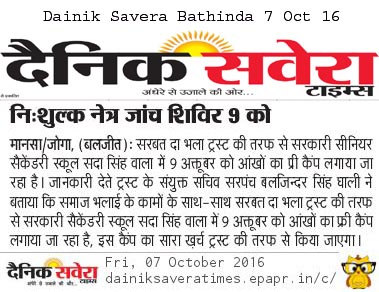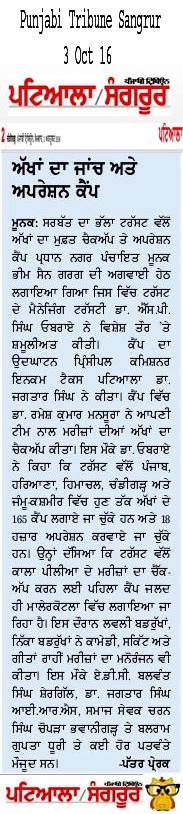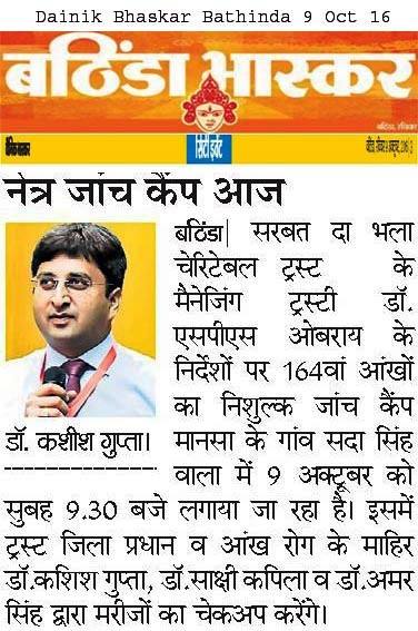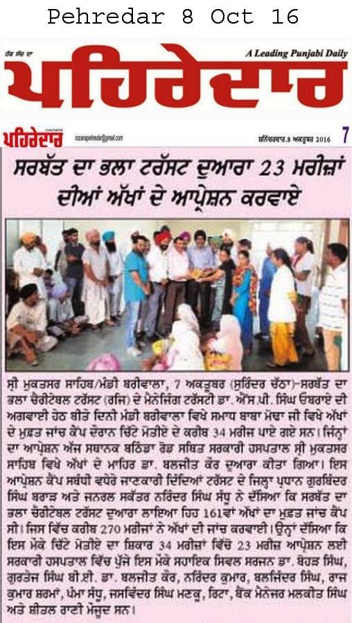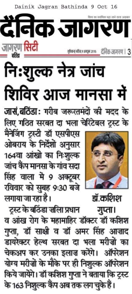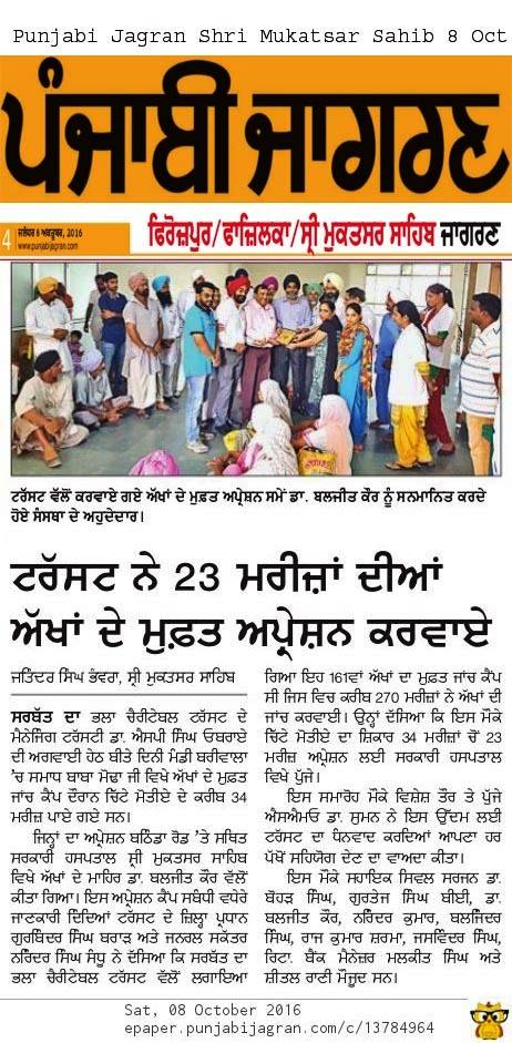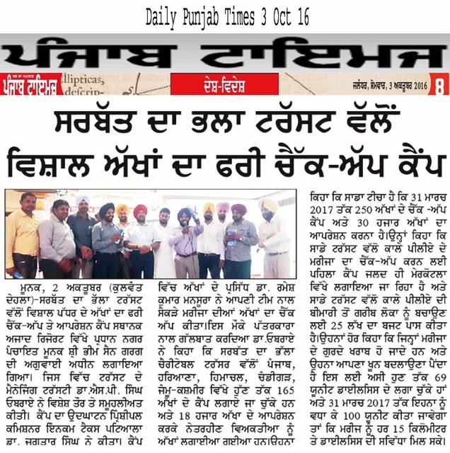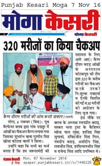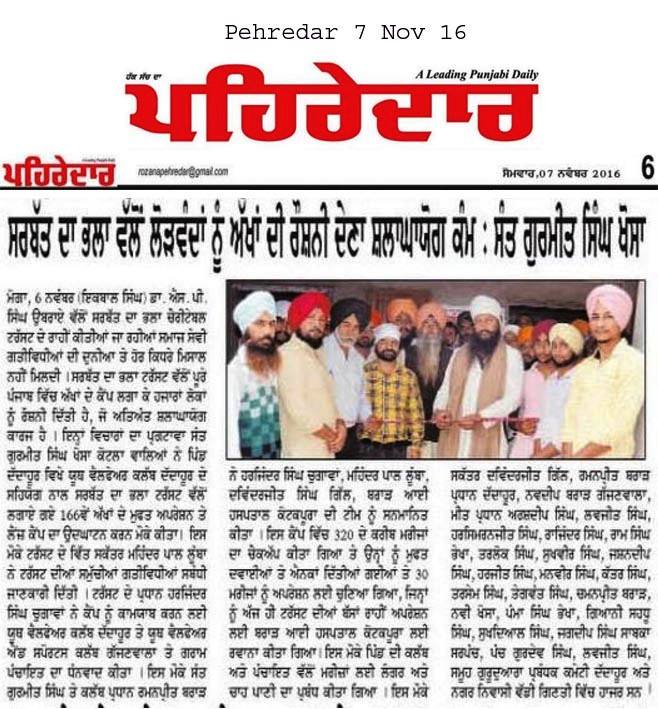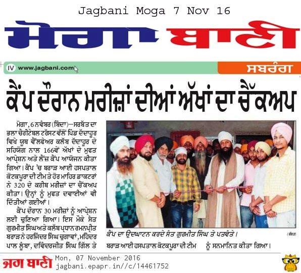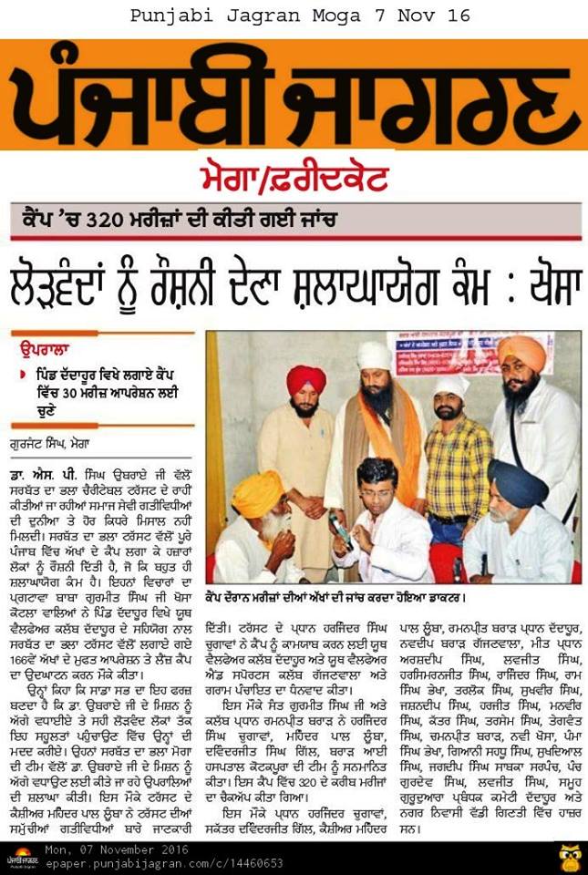 Sarbat da Bhala Charitable Trust free Eye Camp no - 166 at district Moga.