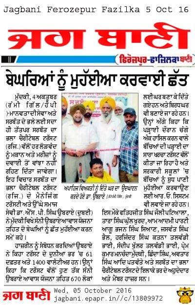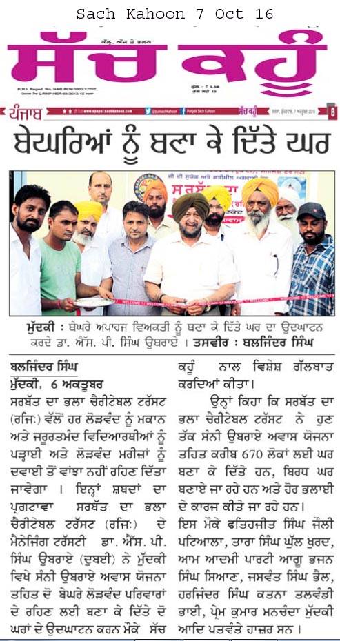 Sarbat da Bhala Charitable Trust constructed new house for homeless family at village Mudki