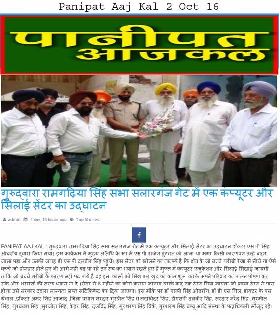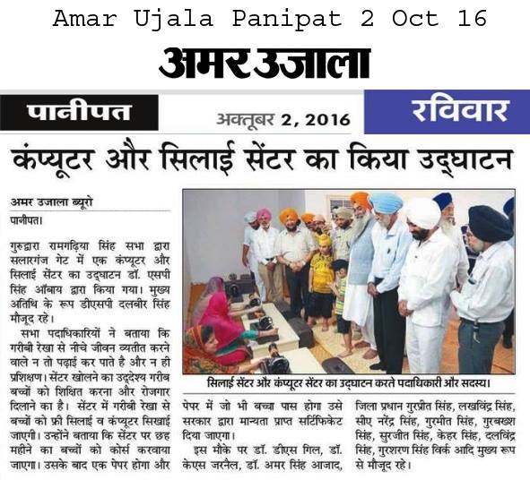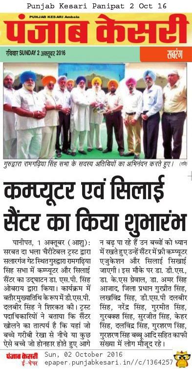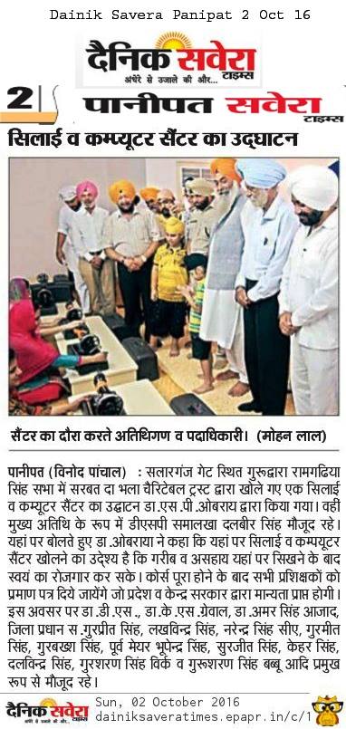 Sarbat Da Bhala Charitable Trust Opened Computer center & Sewing Center at Gurudwara Ramgarhia Singh Sabha at Salarganj Panipat state Haryana