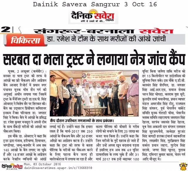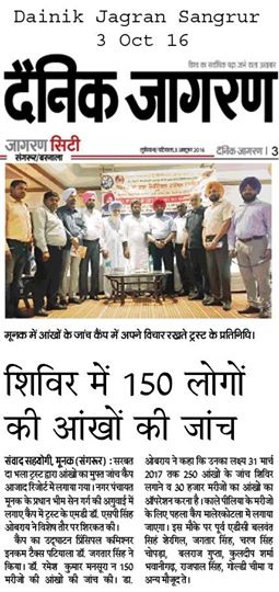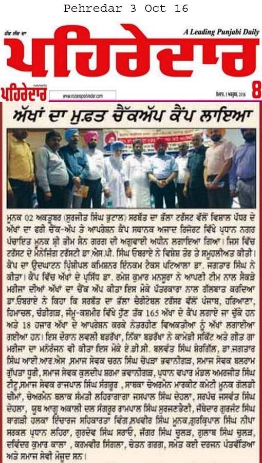 Sarbat da Bhala charitable trust organized 155th free eye checkup, cataract surgery and cornea transplantation camp at Azad palace, Moonak,Sangrur. Eye camp was inaugrated by Dr. Jagtar Singh( Principal Income tax commissioner). & Dr. SP Singh Oberoi