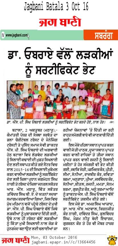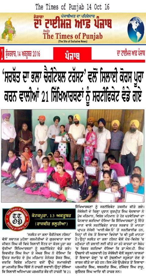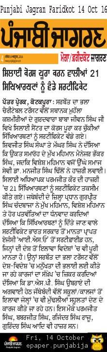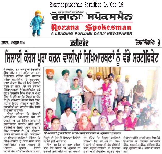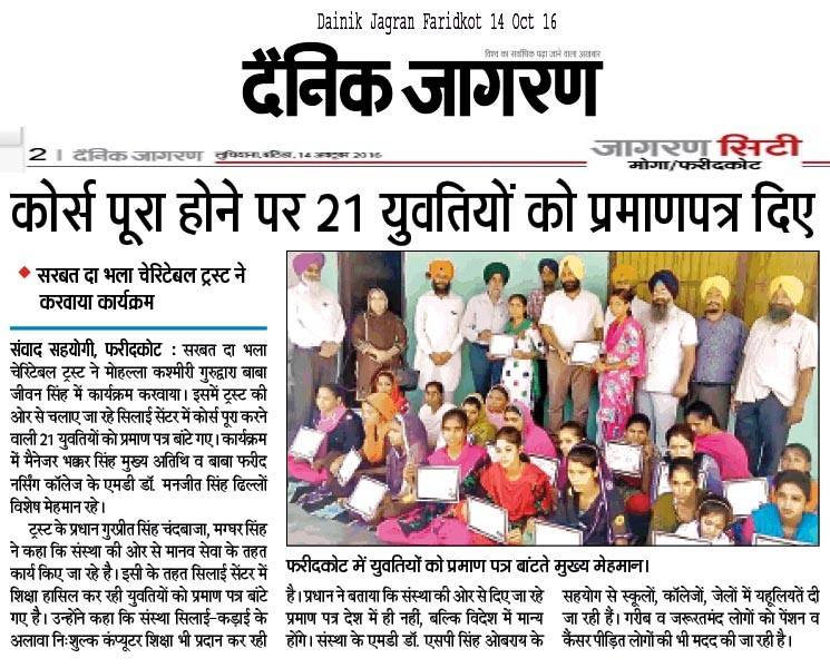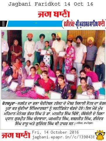 Sarbat da Bhala Charitable Trust Faridkot Sewing center students successfully completed their courses. They have been awarded with certificates by SDBCT Faridkot unit members