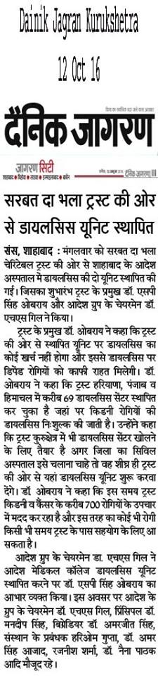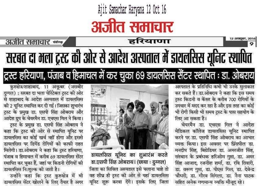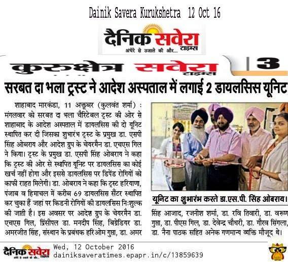 Sarbat da Bhala Charitable Trust donated 2 no Dialysis Unit at Hospital & Medical College Shahbad Haryana