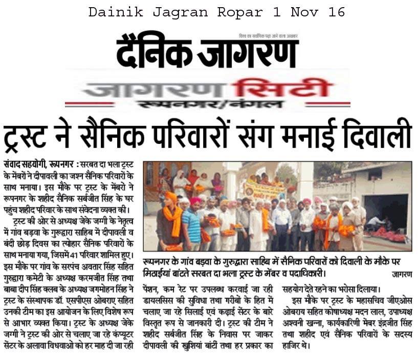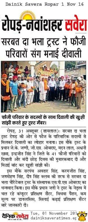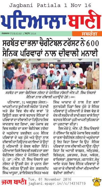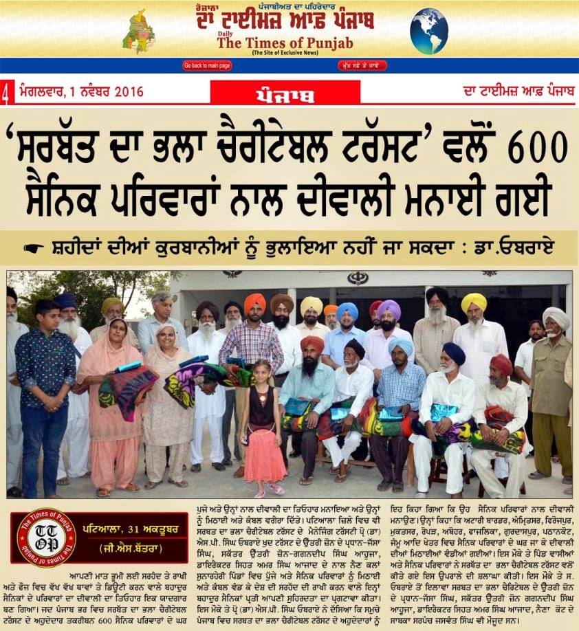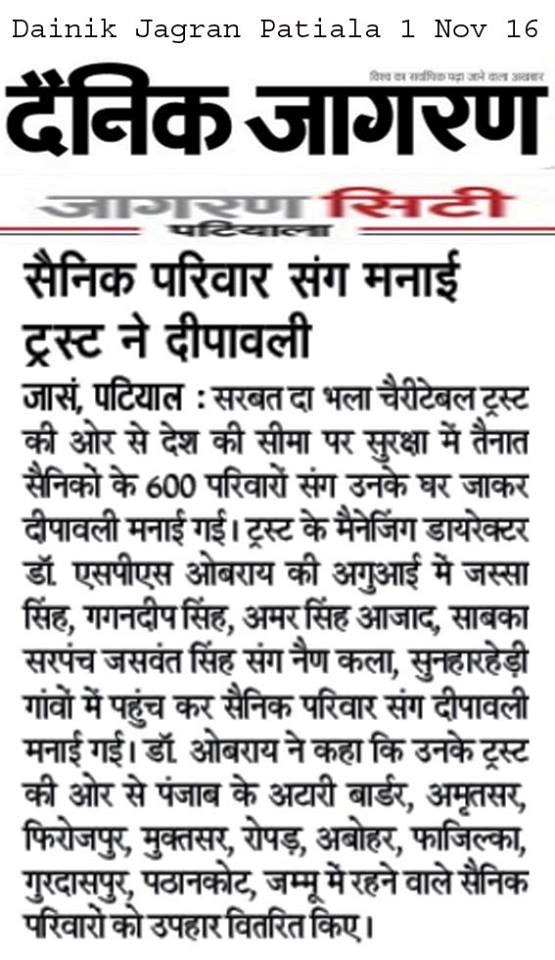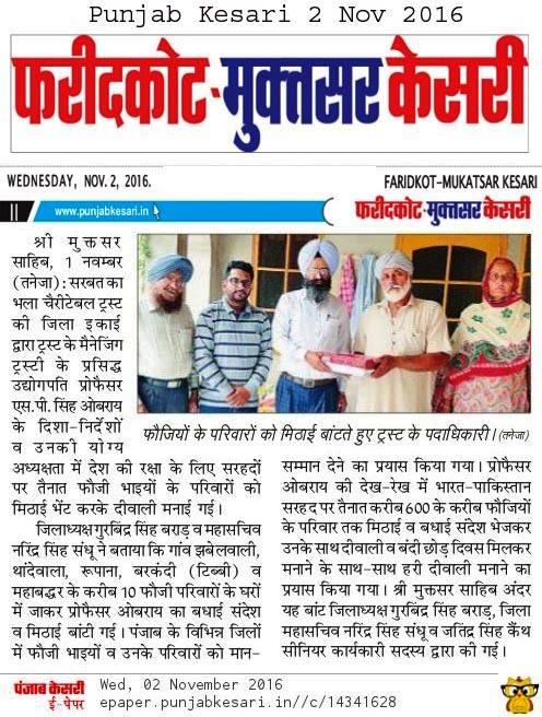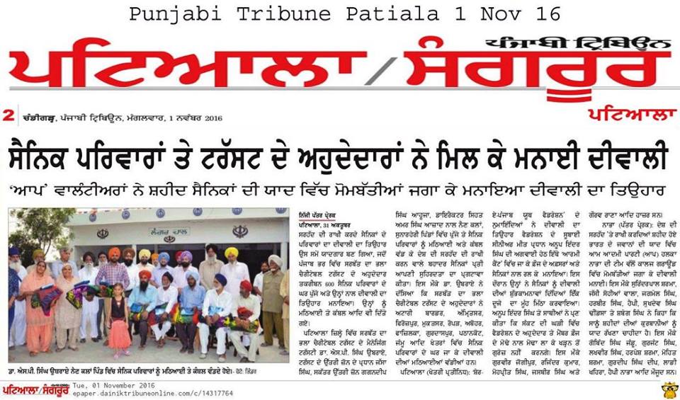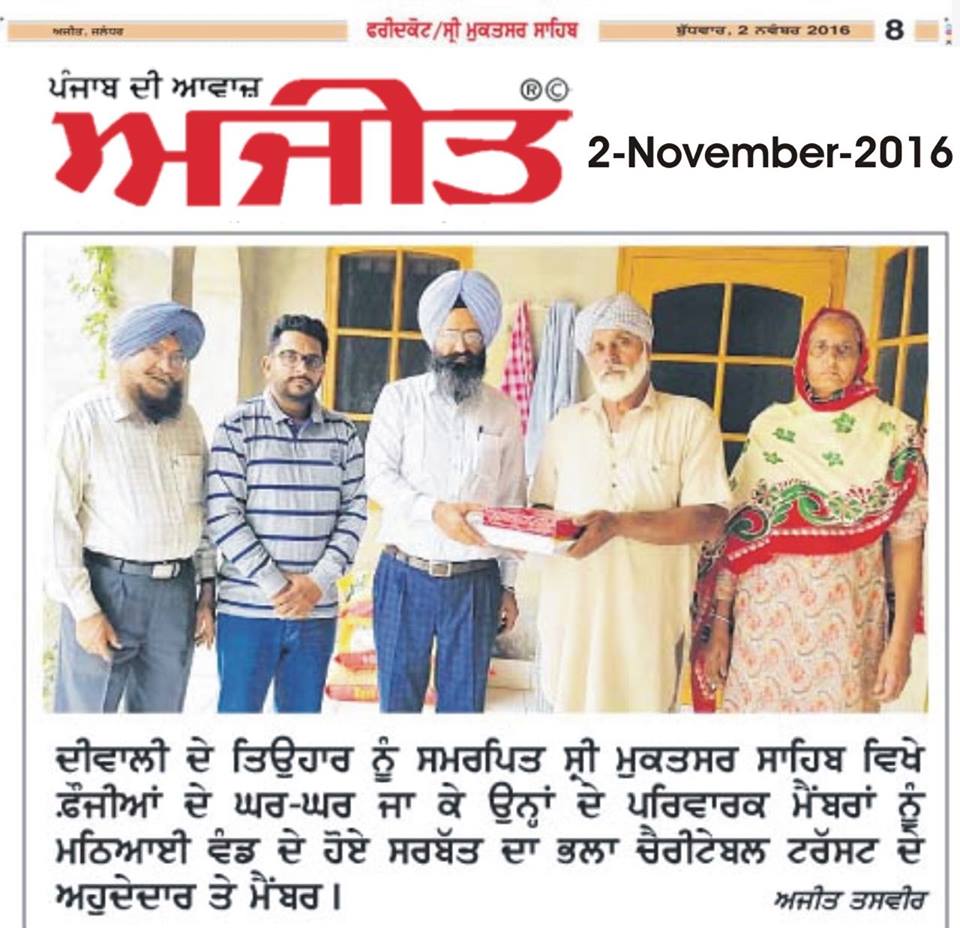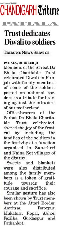 Sarbat Da Bhala Charitable Trust Shri Muktsar sahib team members visited on duty army soilder's residence and shared joys of festivities on occasion of Diwali