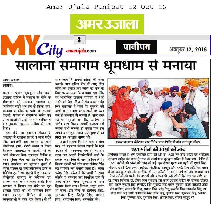Sarbat Da Bhala Charitable Trust organized 165th Eye Camp at Gurudwara Ishrana Sahib district Panipat Haryana.