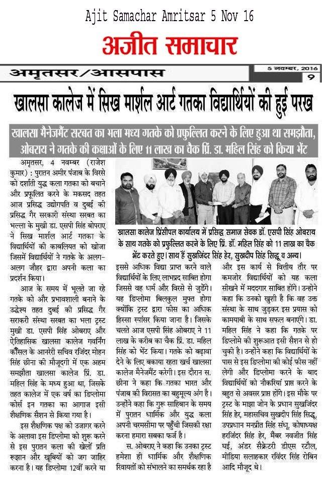 Prof (Dr) S P Singh Oberoi ji handed over the cheque of Rs 11 lakh & 25 thousands ( which is 75% yearly fees of 50 Students ) to college Principal Dr Mehal Singh Ji & staff members