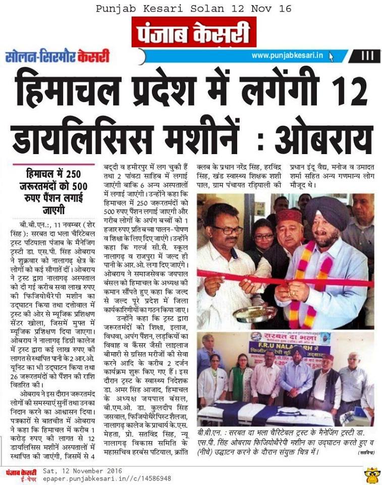 Dr Azad, SDBCT Nalagarh President Mr Bansal along with his team members , Hospital authorities were also present