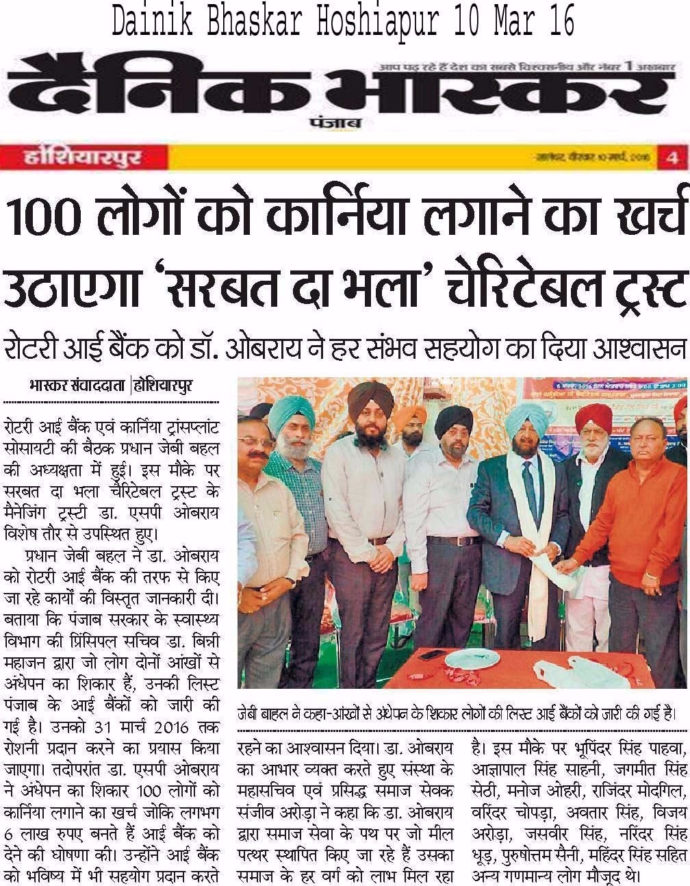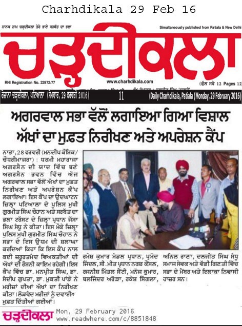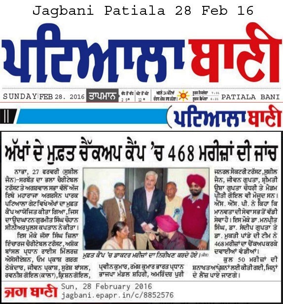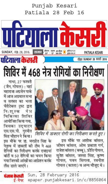 Eye Camp no. 133 organised by SDB at Nabha Distt. Patiala