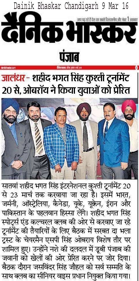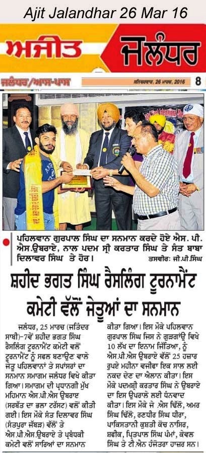 Honoured Ceremony of 7th Shaheed Bhagat Singh International Wrestling Tournament held in Jalandhar