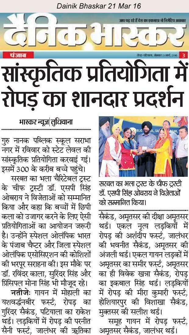 Guru Nanak Public School Sarabha Nagar in Ludhiana organized state level cultural competition