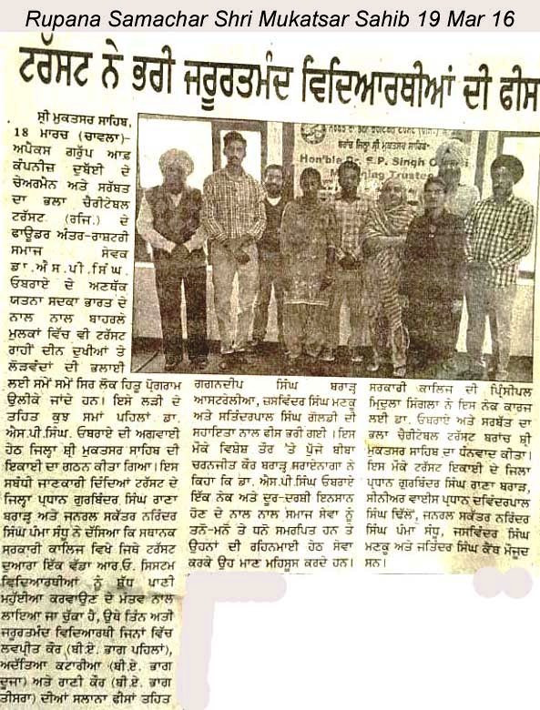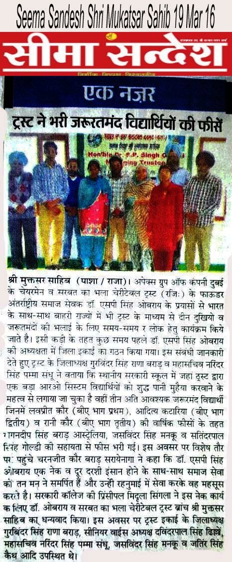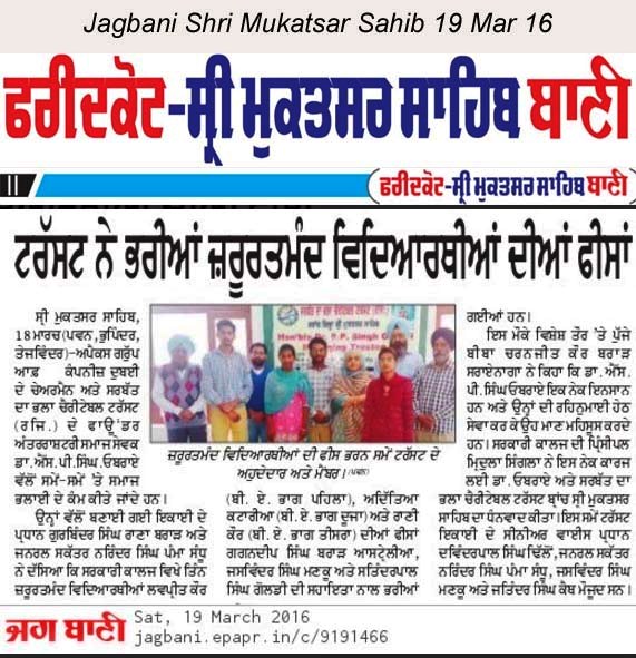 Sarbat Da Bhala Charitable Trust Shri Mukatsar Sahib Unit