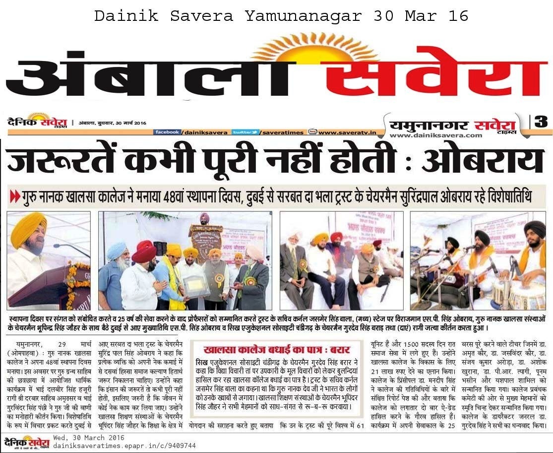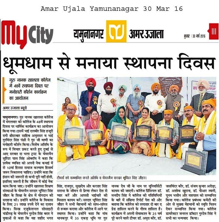 Yamuna Nagar founder day Guru Nanak Khalsa college