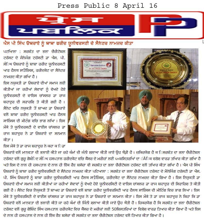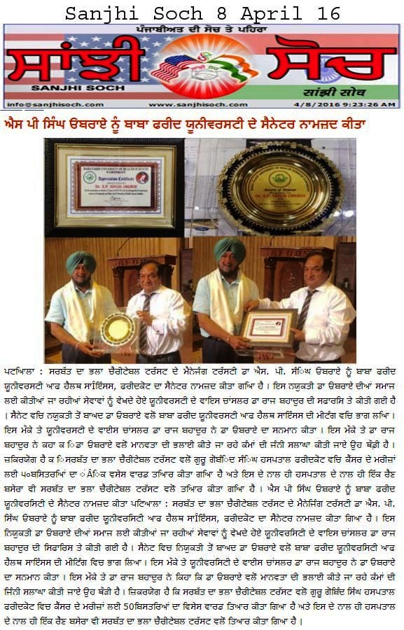 member of Senate of Baba Farid University of Health Sciences Faridkot