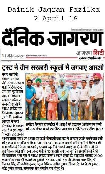 Sarbat Da Bhala Charitable Trust donated RO system to Govt Primary School Dangar Khera Abohar district Fazilika