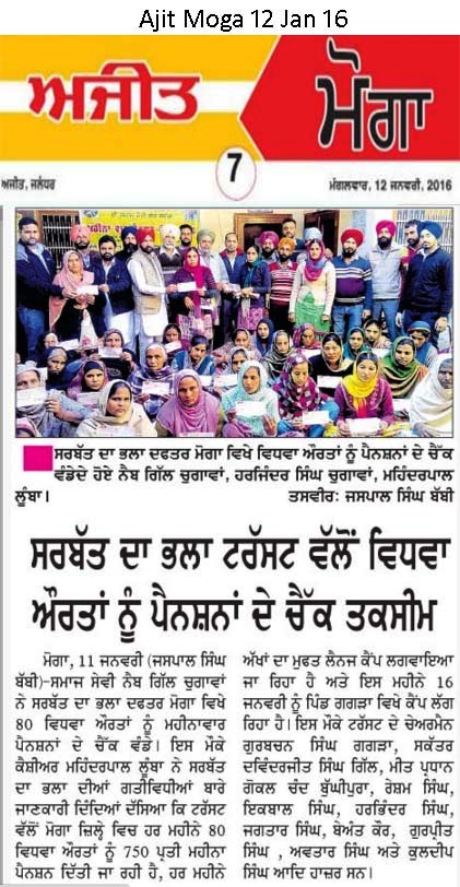 pension cheques distributed by shrimukat sahib unit of