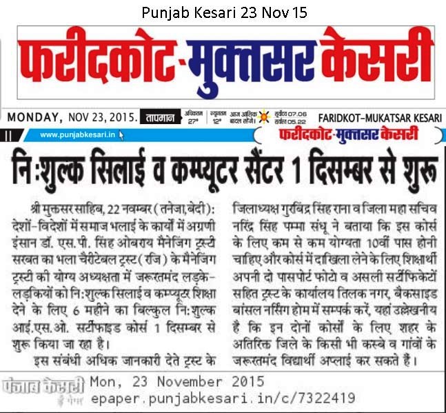 On 1st Dec - Faridkot - sewing & computer centre
