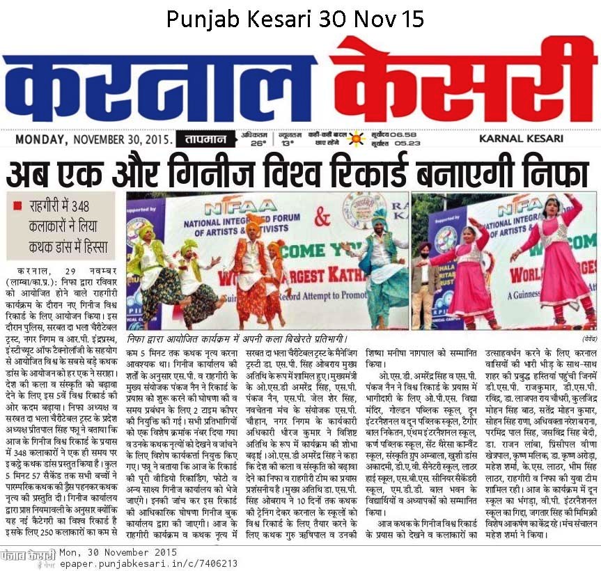 world largest kathak danceorganisedby thenifaaincol