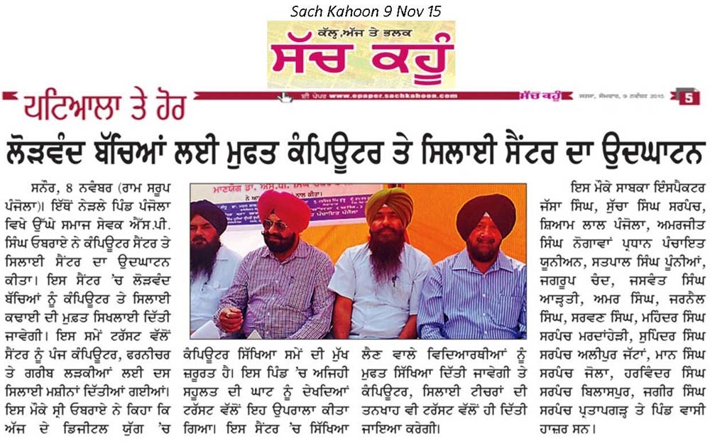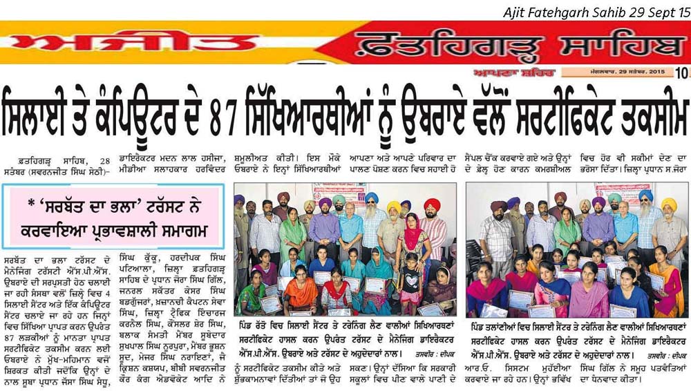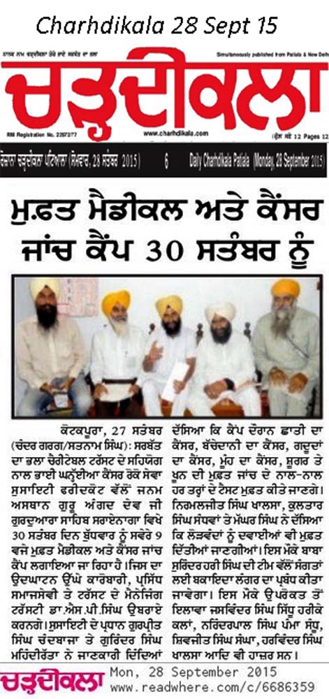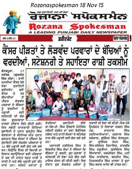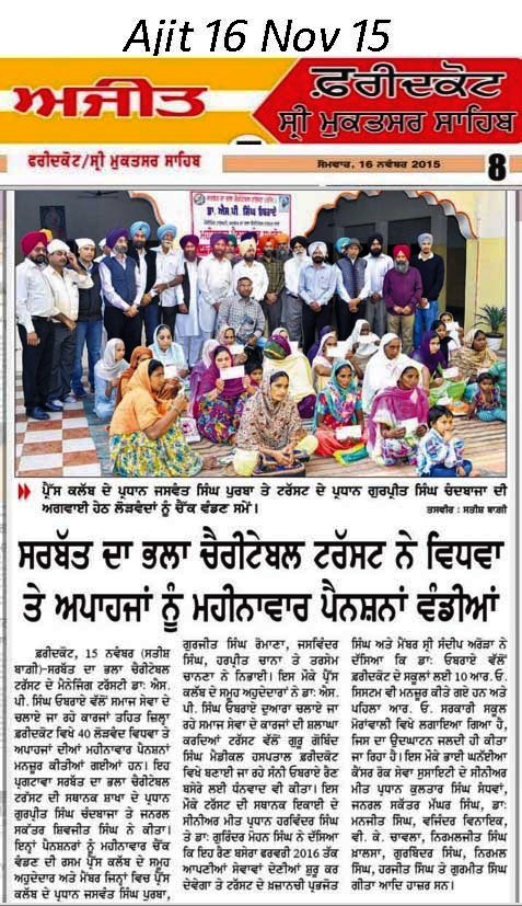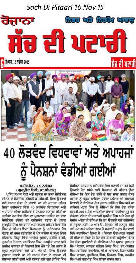 SDB Trust Providing financial help to 13 cancer Patients at Faridkot
