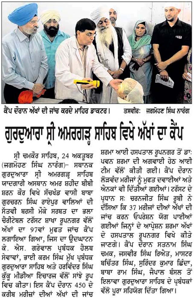 24.oct-97th Eye camp at Gurudwara Shri Amargarh Sahib Ropar