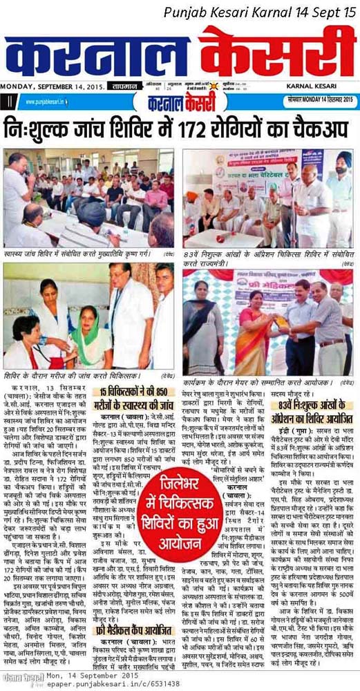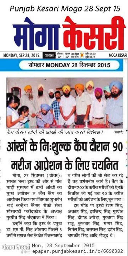 20.sept-organized 84th Free eye operation camp in Mata Naina Arya Dharamshala, Samana