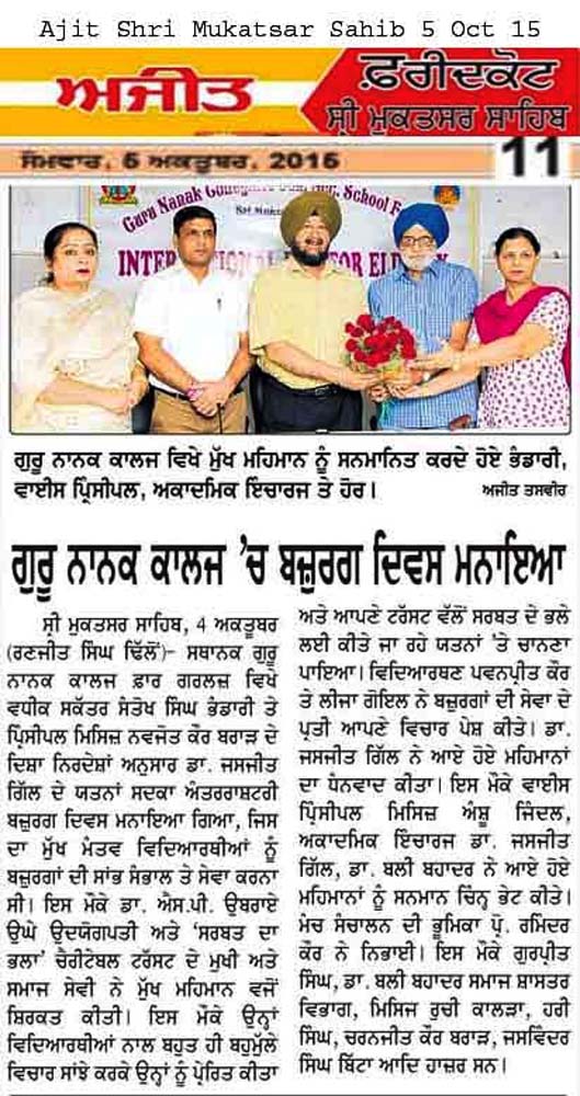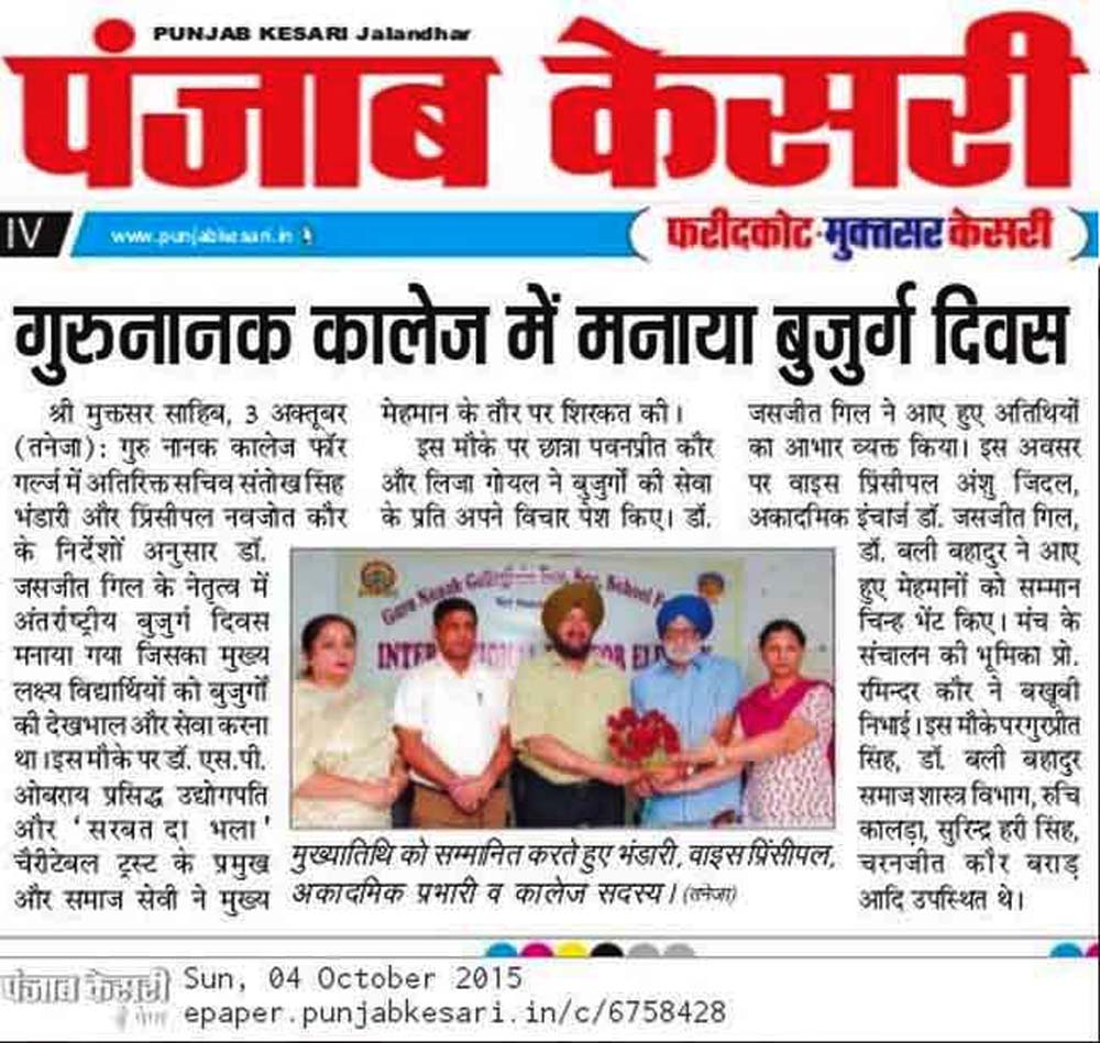 Gurunanak collegiate sen. sec. School for Girls honoured Dr Oberoi