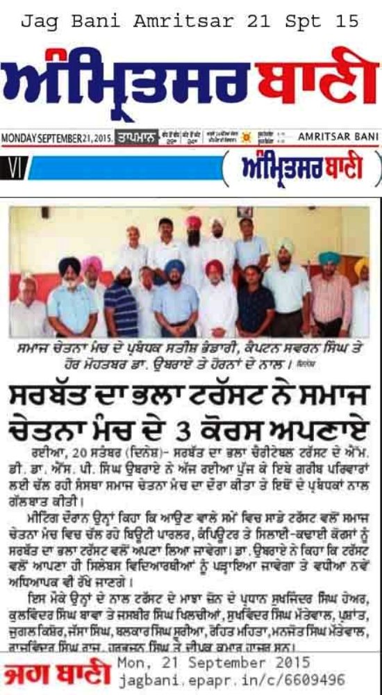 adopted 3 courses of Samaj Chetna Manch during his Amritsar visit