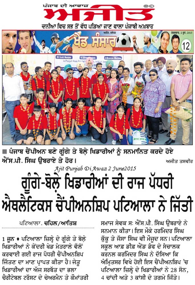 winning 28 Gold Medals, 4 Silver Medals, 3 Bronze Medals in Punjab State 29, 30, 31 May 2015