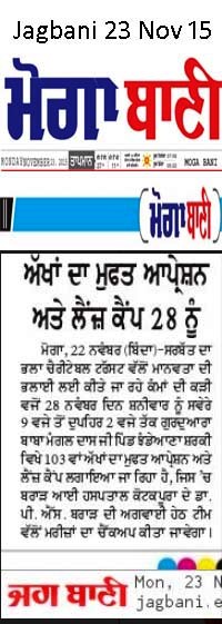 organised free eye check up & operation camp at Mari Mustafa, District Moga. Punjab