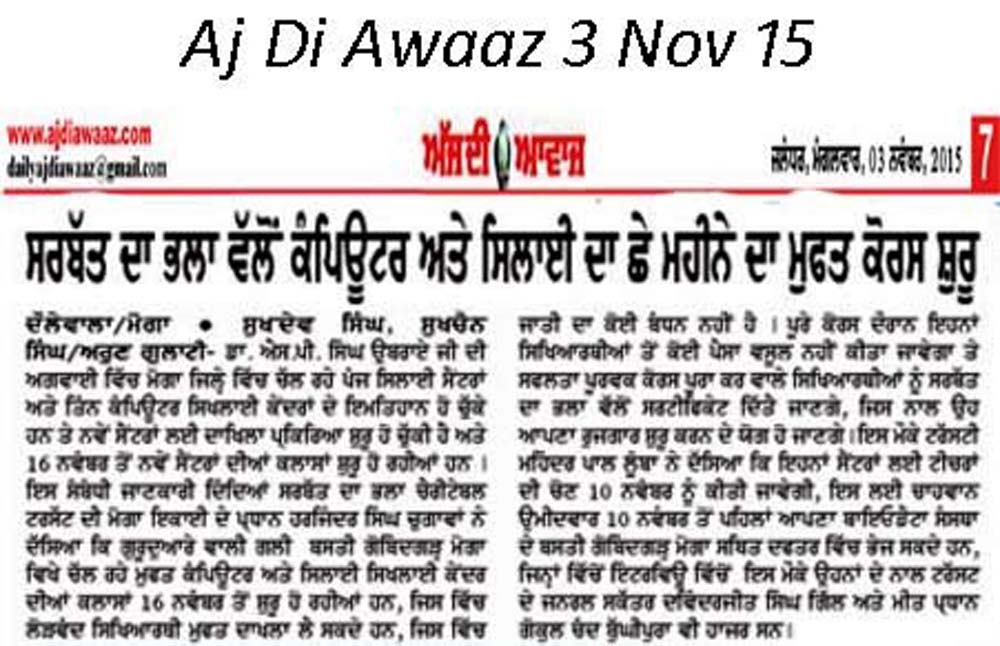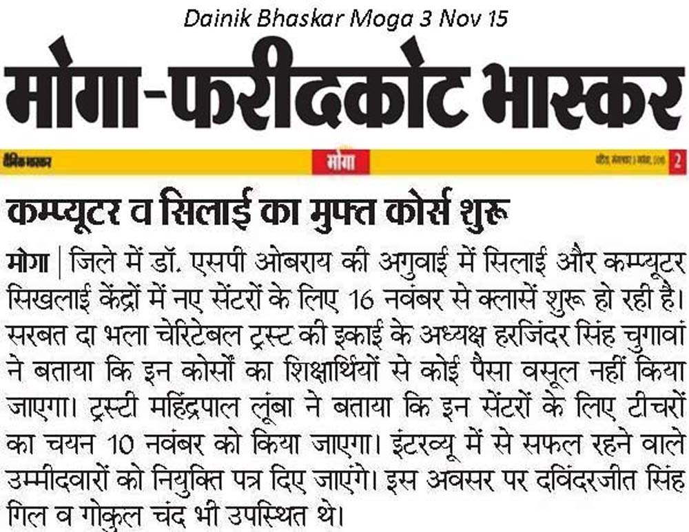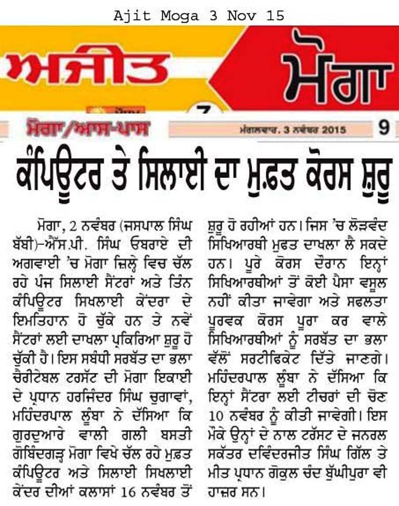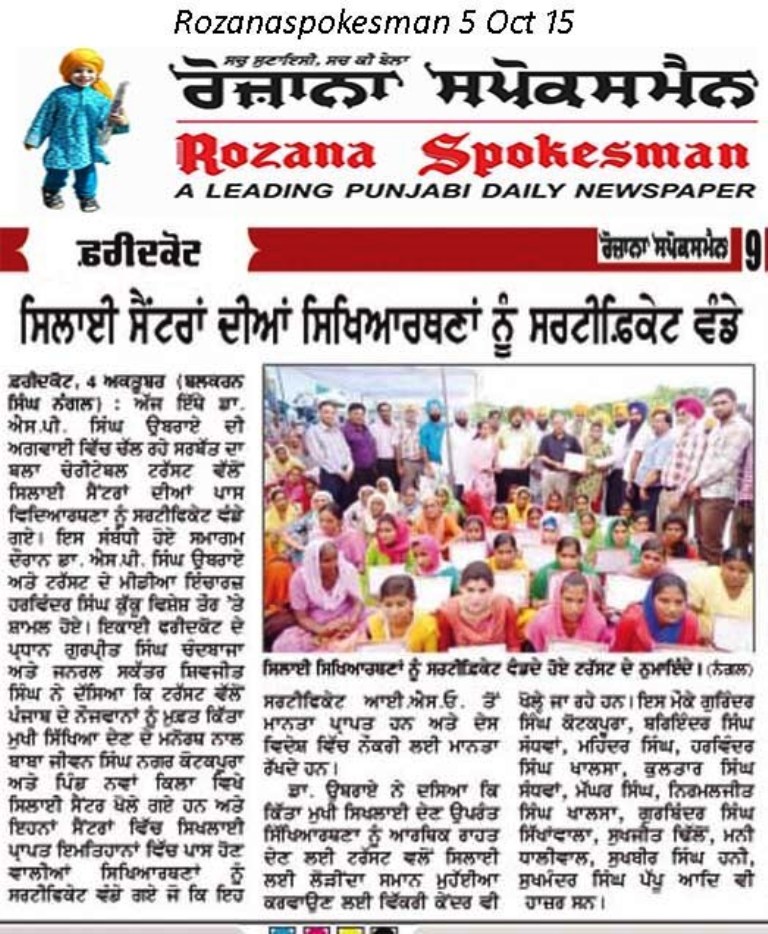 distributed to successful candidates of Two Sewing Centre Jiwan Singh Nagar, Kotkaura and Navan Qila, Faridkot