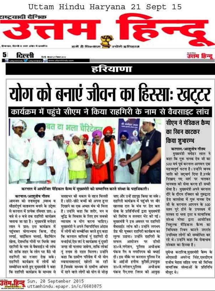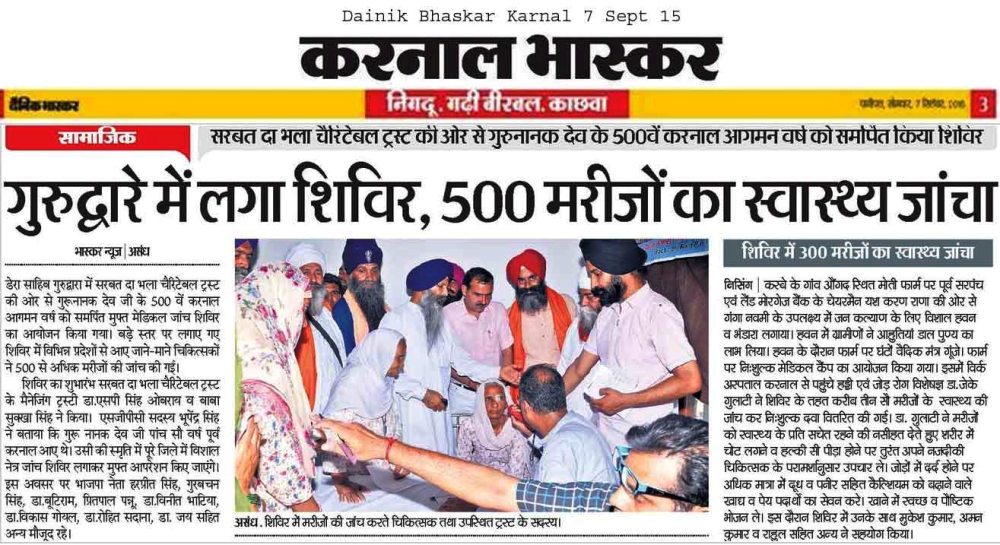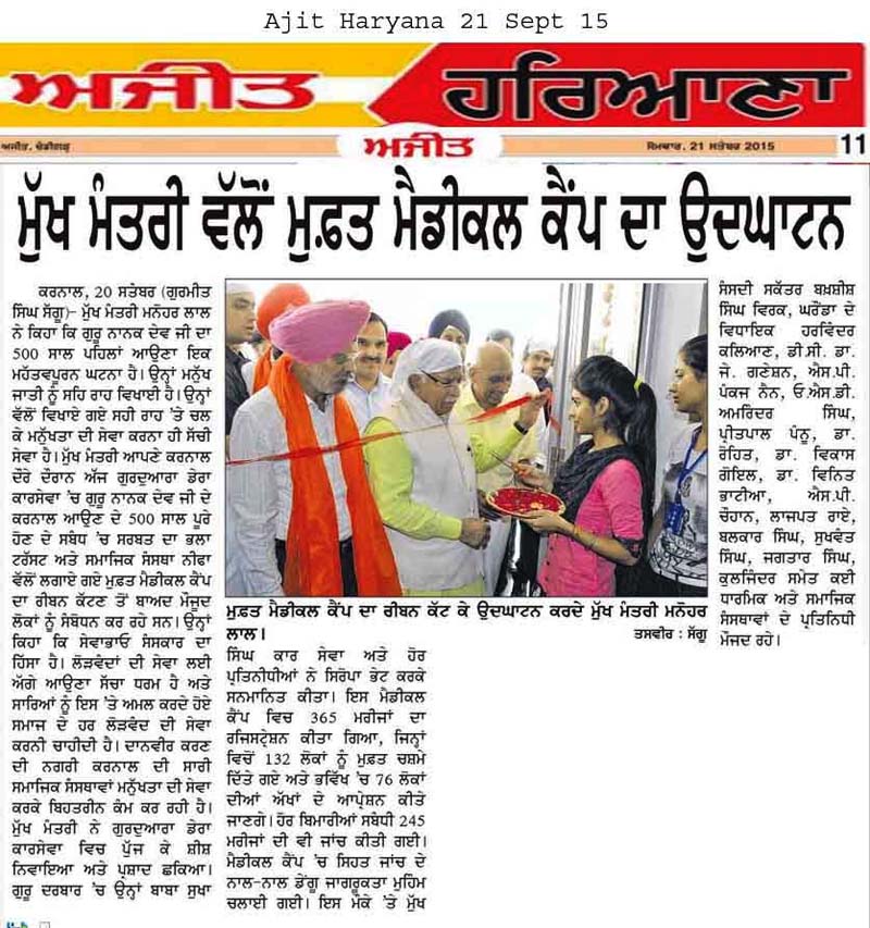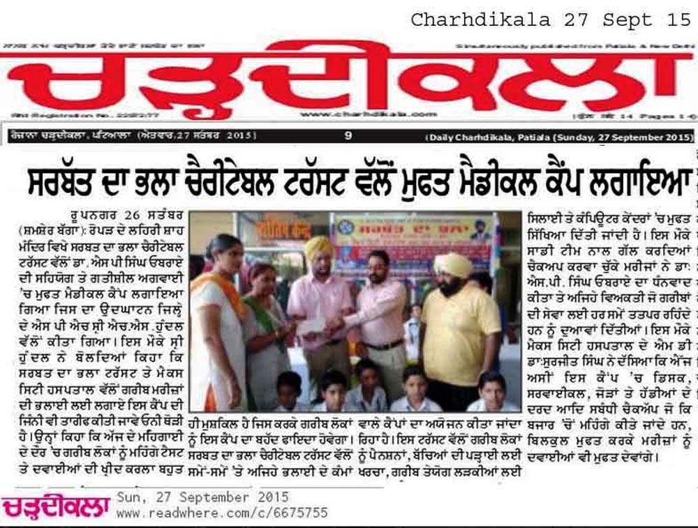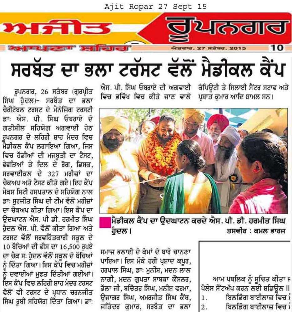 Medical check up Camp at Ropar, Punjab Dated 26-09-15