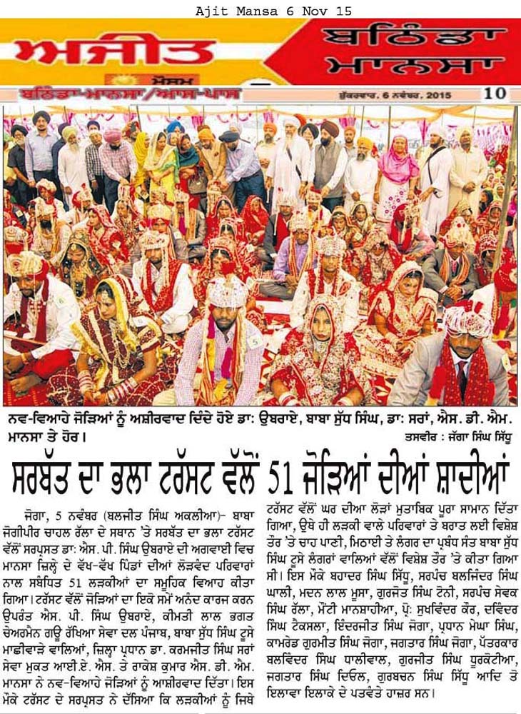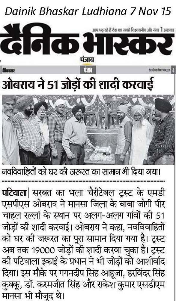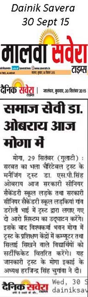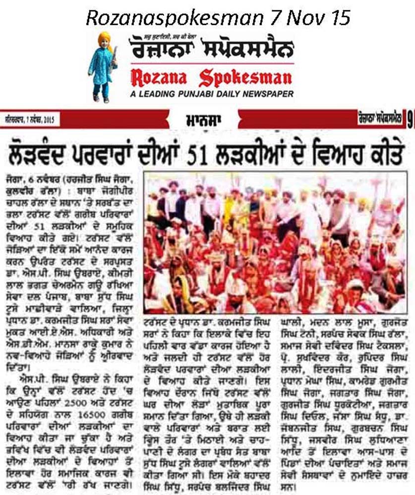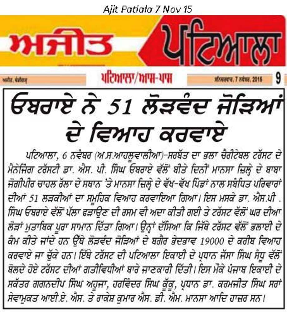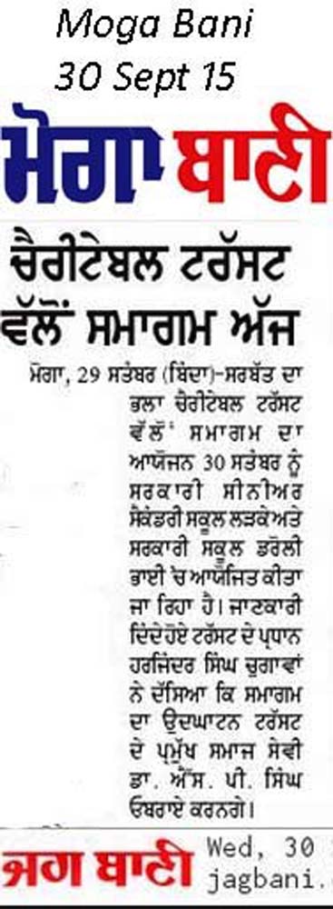 Medical check up Camp at Ropar, Punjab Dated 26-09-15