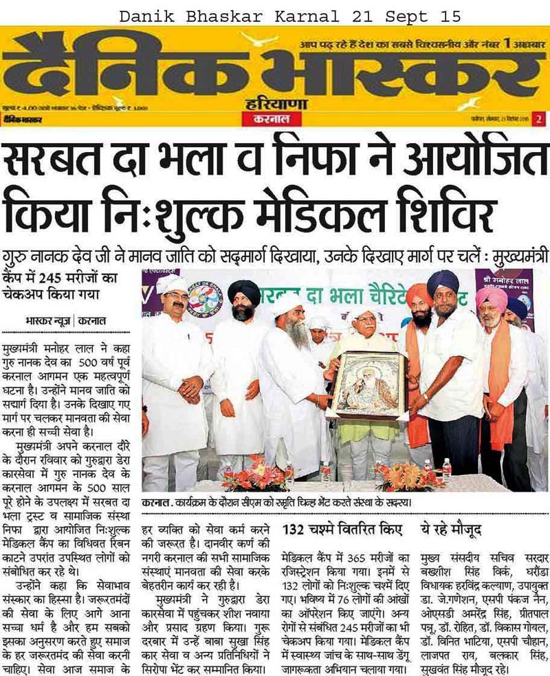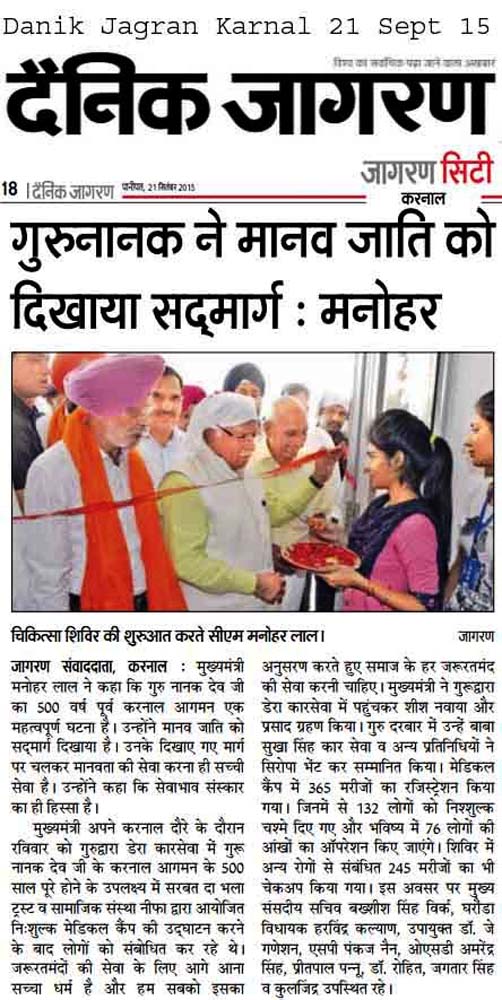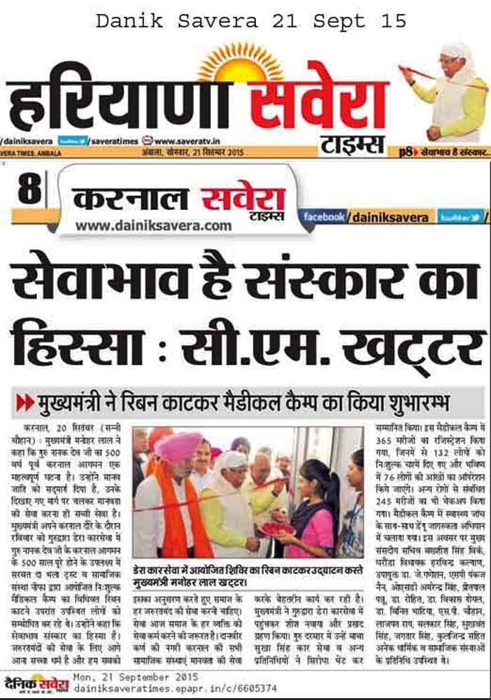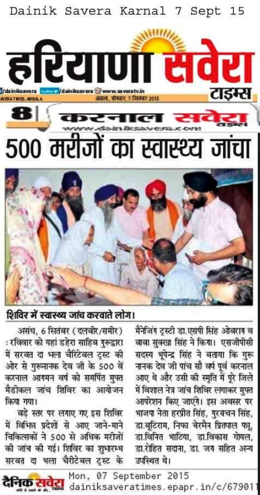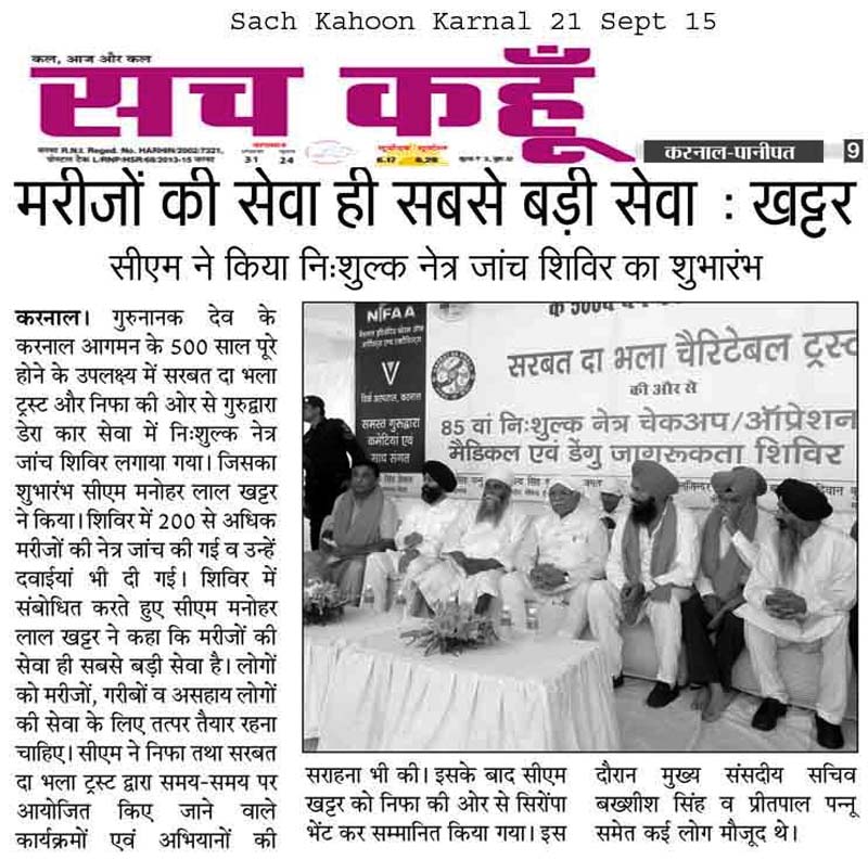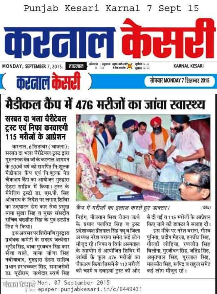 21-sept-2015 organised 85th Free Eye Checkup at Karnal