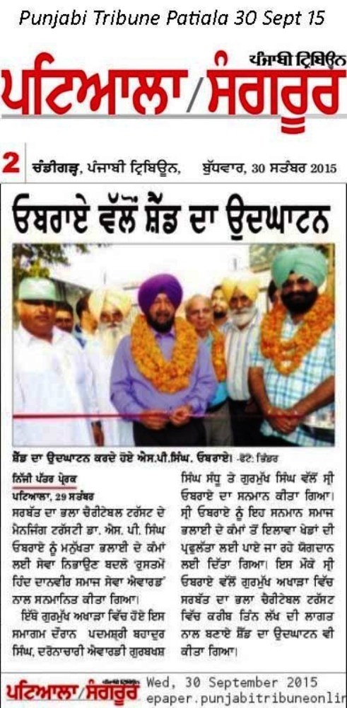 inaugurated the shed made by Sarbat Da Bhala trust at Pehalwan Gurmukh Singh akhada, Patiala