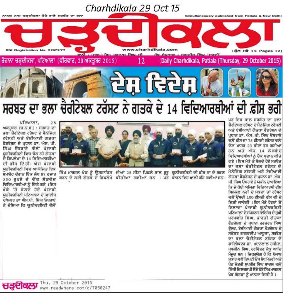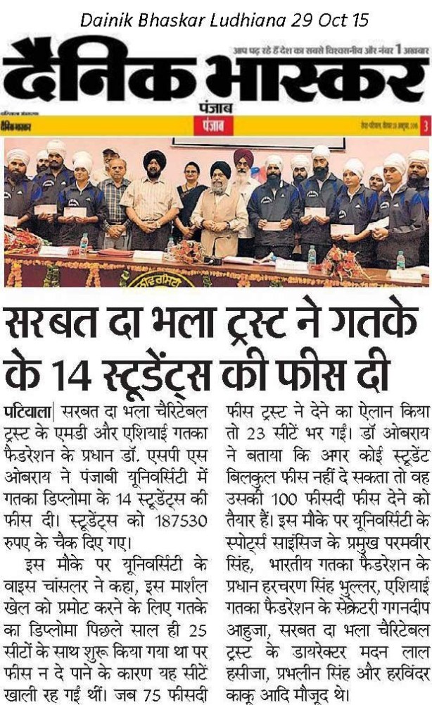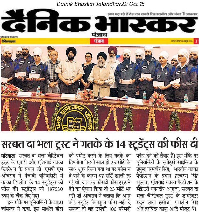 Fw 1 - Distributed cheques to 14 students of Gatka at Punjabi University